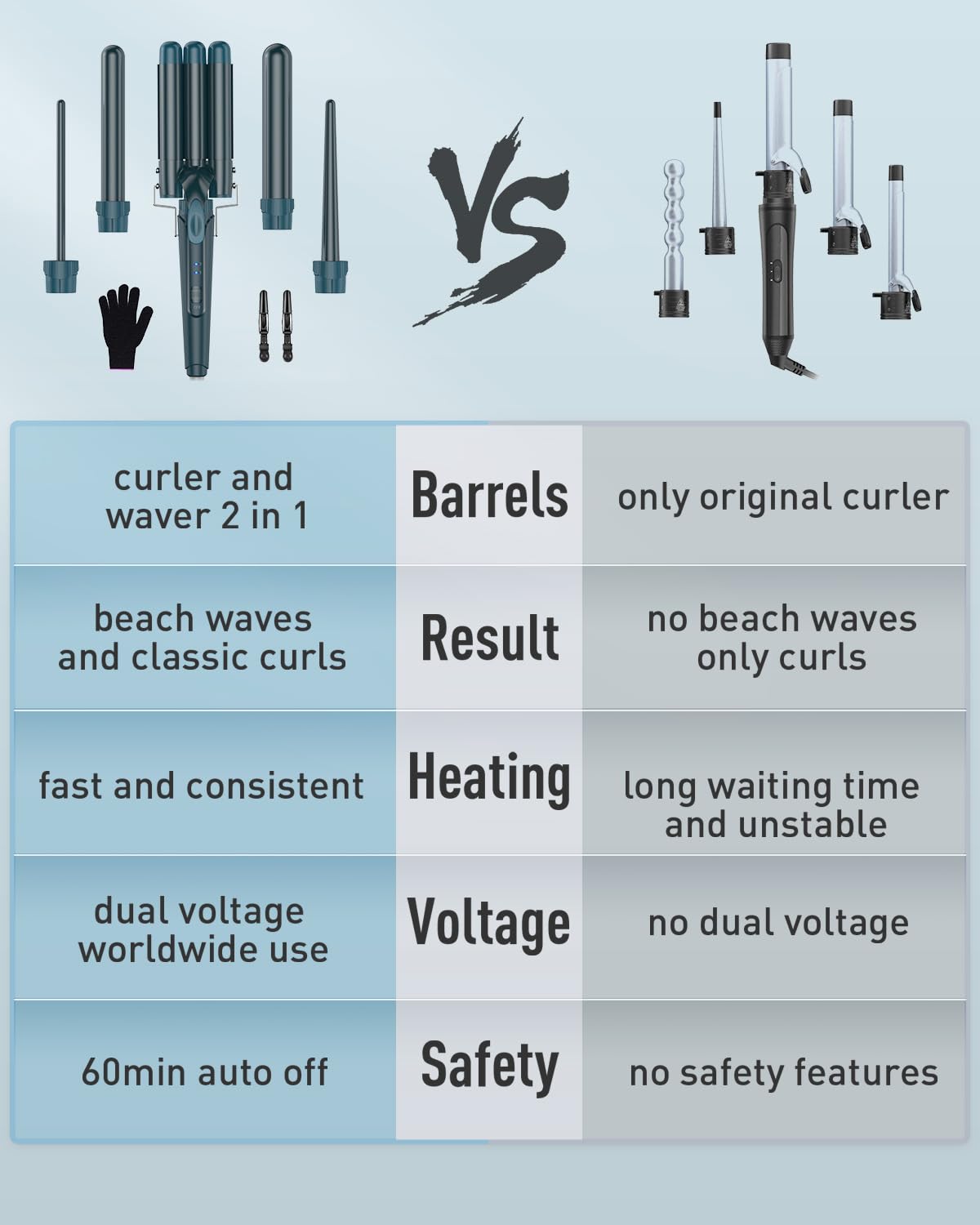 - Get 5 Types Of Gorgeous Curls: Customize your curls with hair waver 3 barrel and 4 curling wand to switch up your different hairstyles everyday, easy to use for beginners.