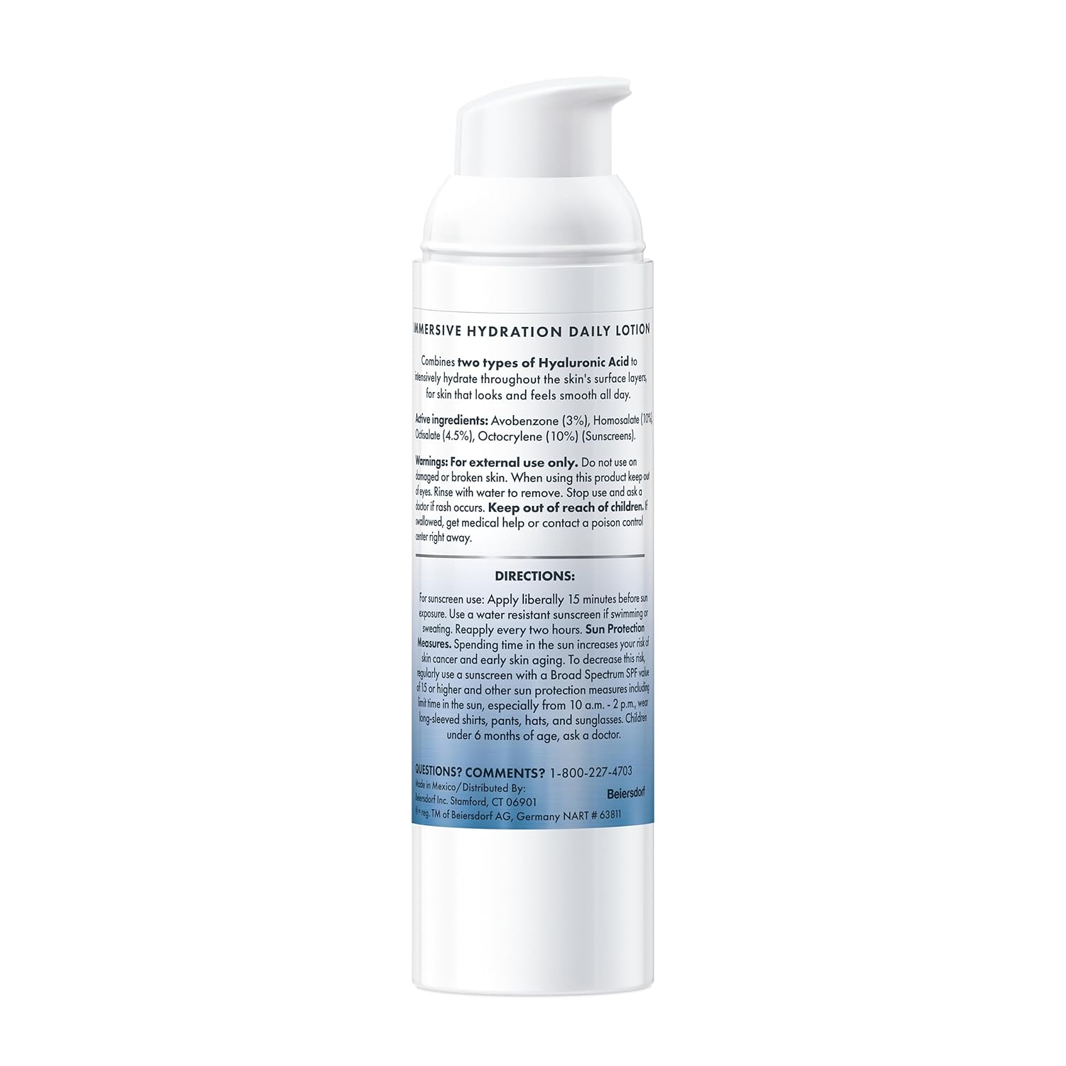 - Includes one (1) 2.5 fluid ounce bottle of Eucerin Face Immersive Hydration Daily Lotion Broad Spectrum SPF 30 Sunscreen