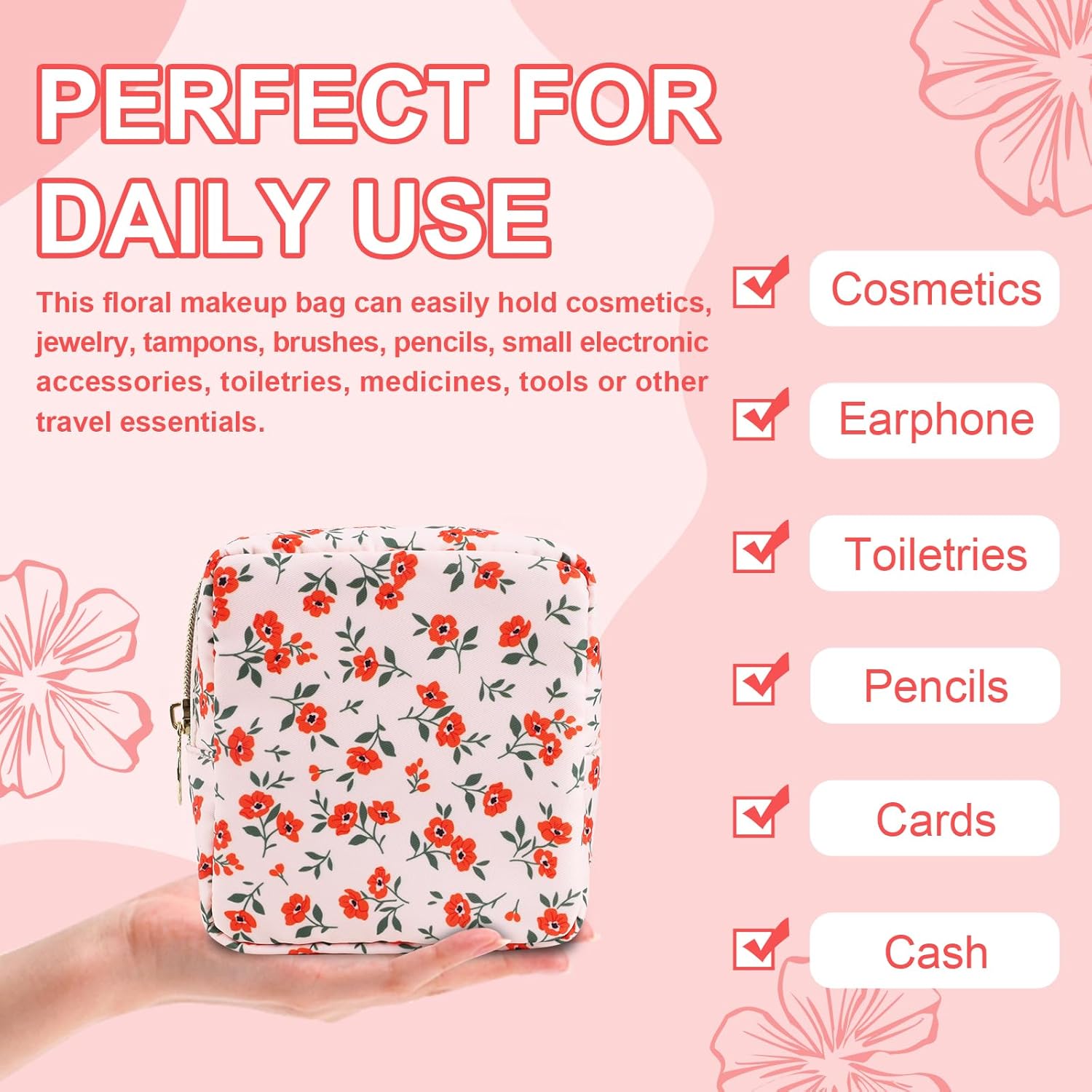 - 【Superior Quality】The floral makeup bag is made of lightweight and durable high quality nylon. It is waterproof and easy to clean, helping to protect your cosmetics and toiletries from water spill accidents.