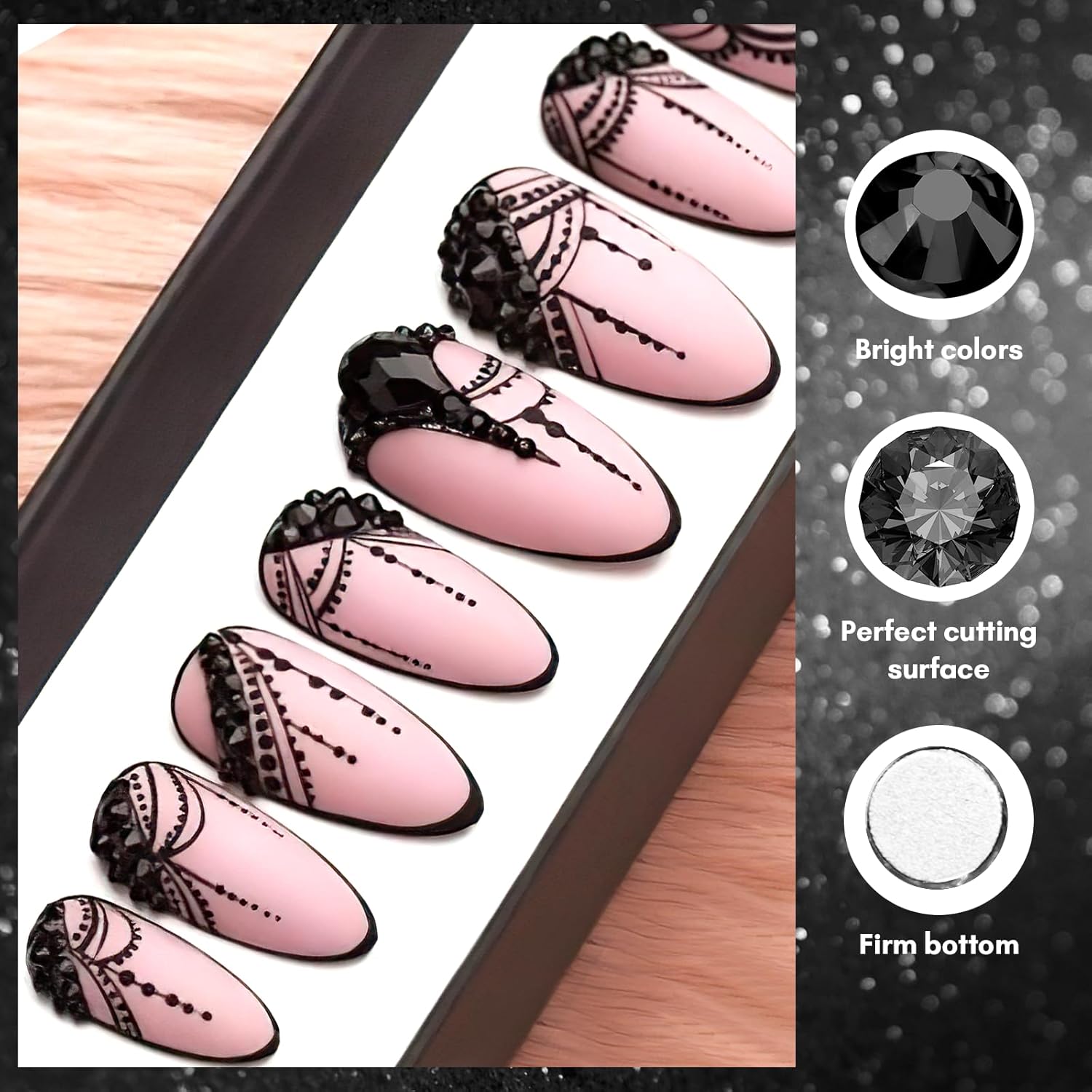 - Size : Nail Rhinestone Set Black