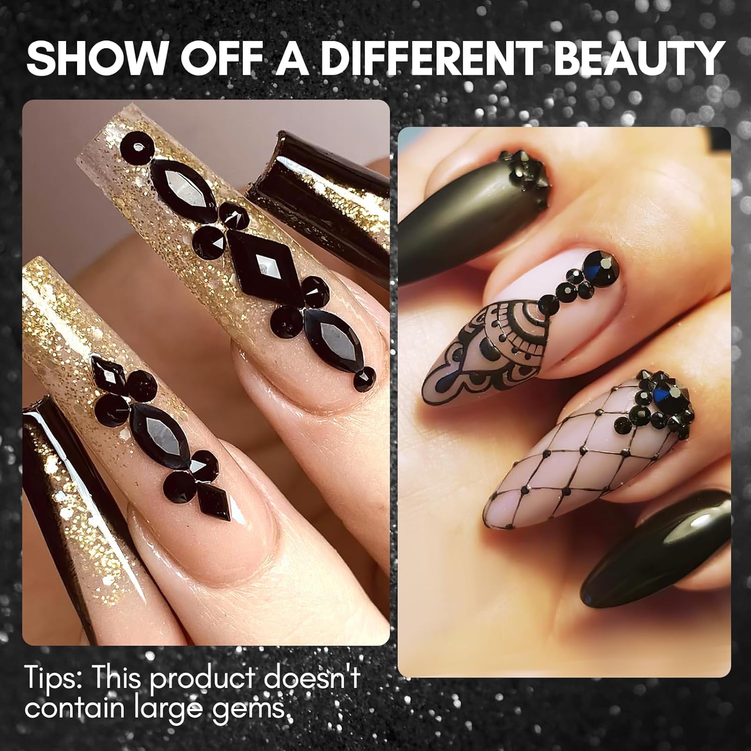- Pattern : A12-Nail Decoration Black Rhinestone