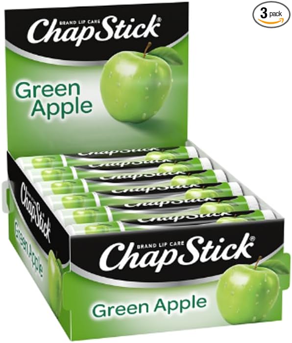 - 0.15-ounce refill sticks of ChapStick Green Apple Flavored Lip Balm
