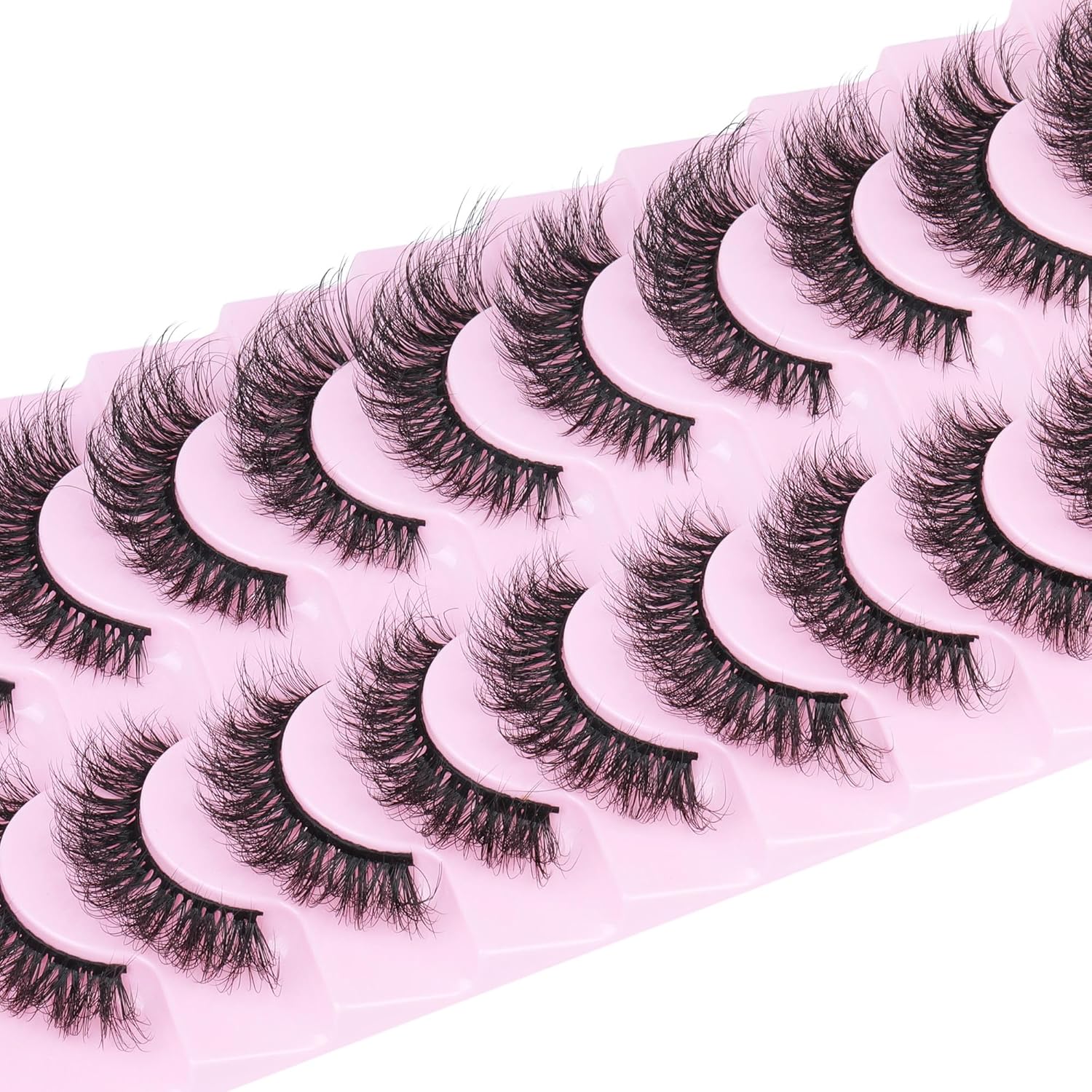 Mink Lashes 10 Pairs False Eyelashes D Lashes Natural Cat Eye Volume Faux Mink Lashes Wispy 18 mm 5D Thick Soft Eyelashes Pack by FANXITON