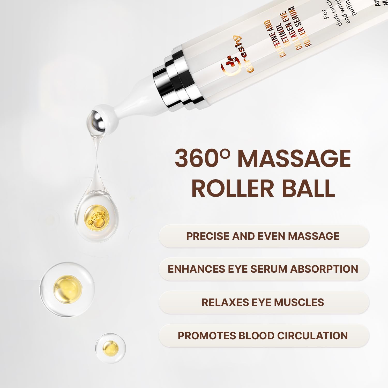 - Eye Cream Alleviate Eye Fatigue: Eye Serum Roller for dark circles and puffiness stimulates eye skin cells, enhances skin metabolism, reduces eye fatigue, and other concerns, especially beneficial for frequent electronic device users. Caffeine Rollerball Eye Serum can maintain the vitality of the skin around the eyes for a long time and enhance skin elasticity.