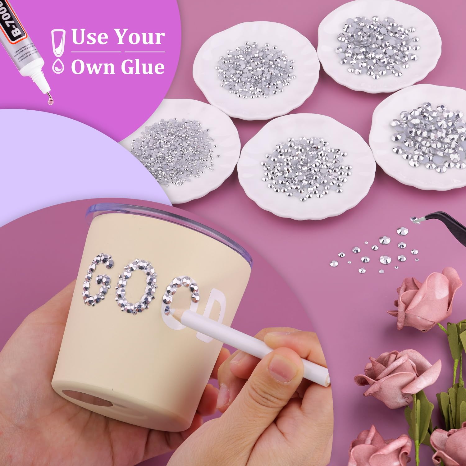 - 💎TIPS FOR USE -- Non-hot fix flatback gemstones require adhesive for nail art, crafts, or artwork design. We recommend using B7000 jewelry glue for DIY projects and UV / quick dry nail glue for nail art. To apply the resin rhinestones, first, clean the surface of your nails or the crafts you wish to embellish. Then, apply the rhinestones with the appropriate glue and wait for them to dry. (Please note that glue is not included.)