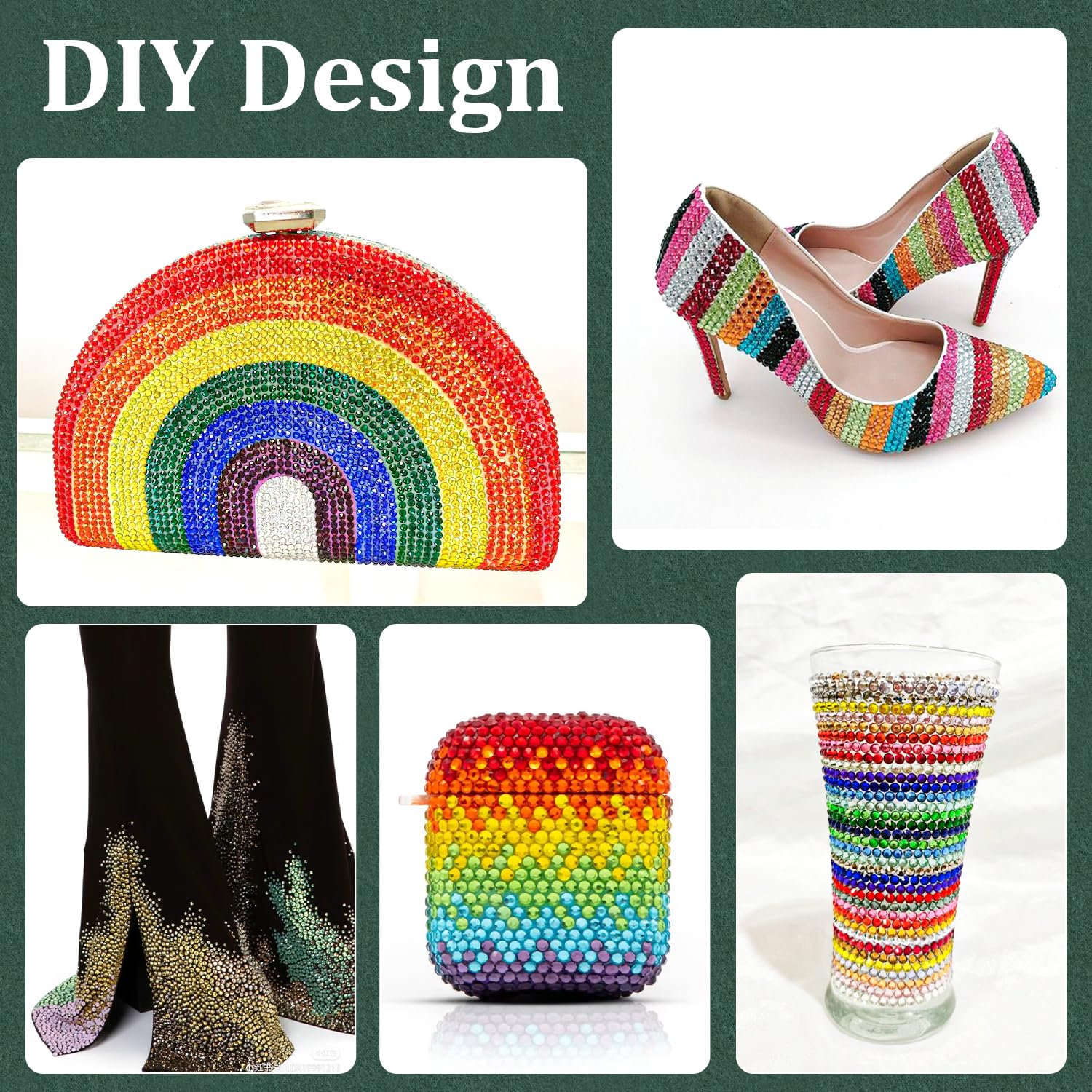 - 🤍WIDE APPLICATION -- These sparkling iridescent resin crystals are perfect for creating dazzling looks. Use them for bedazzling DIY crafts like shoes, tumblers, mugs, bottles, phone cases, popsockets, scrapbooks, photo frames, diamond paintings, greeting cards, bags, glasses, guitars, keychains, hats, masks, hair clips, bracelets, wristbands, clothing, wedding dresses, and more. Apply it to what you want to bling!