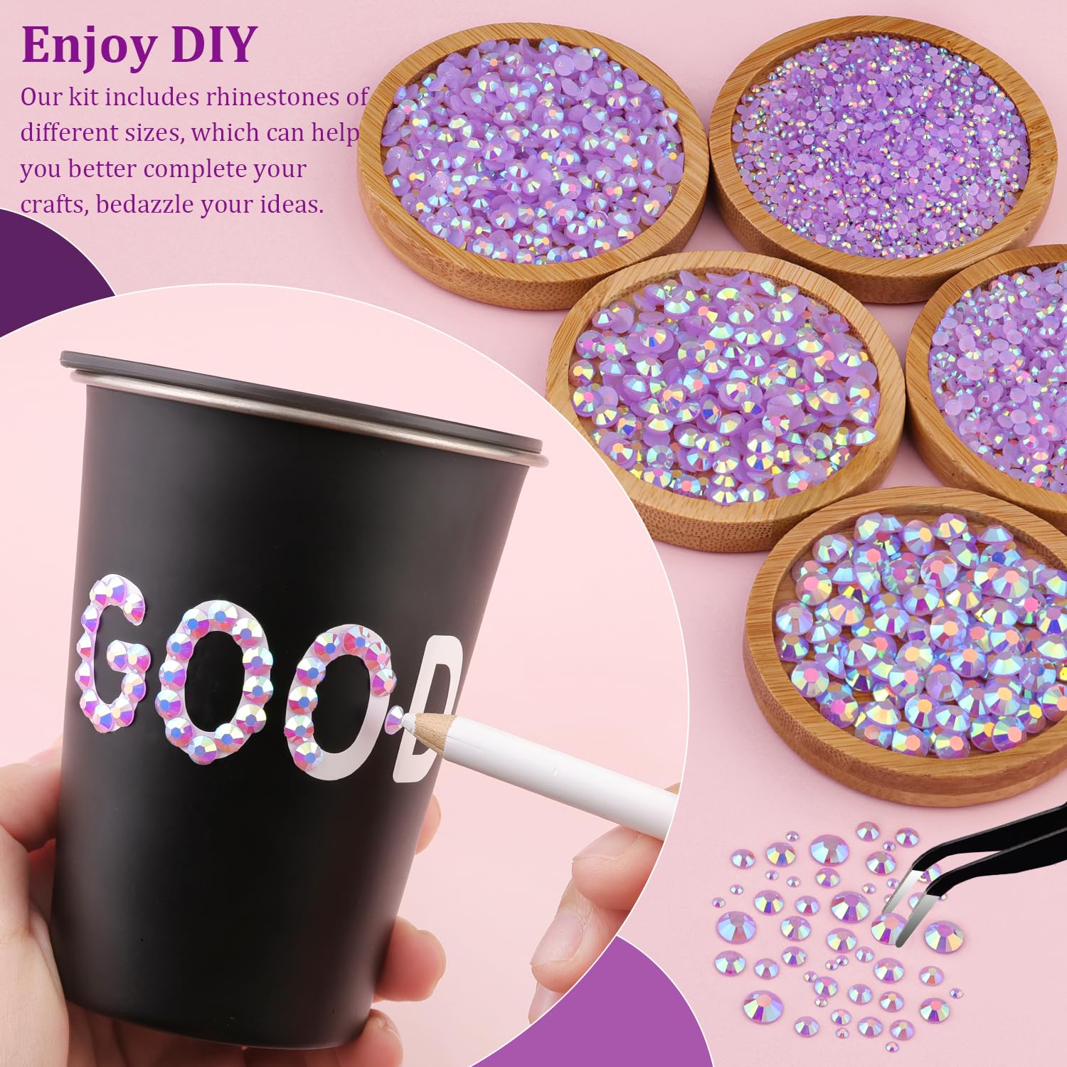 - 🌈WIDE APPLICATION -- These sparkling iridescent jelly crystals are perfect for creating dazzling looks. Use them for bedazzling DIY crafts like shoes, tumblers, mugs, bottles, phone cases, popsockets, scrapbooks, photo frames, diamond paintings, greeting cards, bags, glasses, guitars, keychains, hats, masks, hair clips, bracelets, wristbands, clothing, wedding dresses, and more. Apply it to what you want to bling!