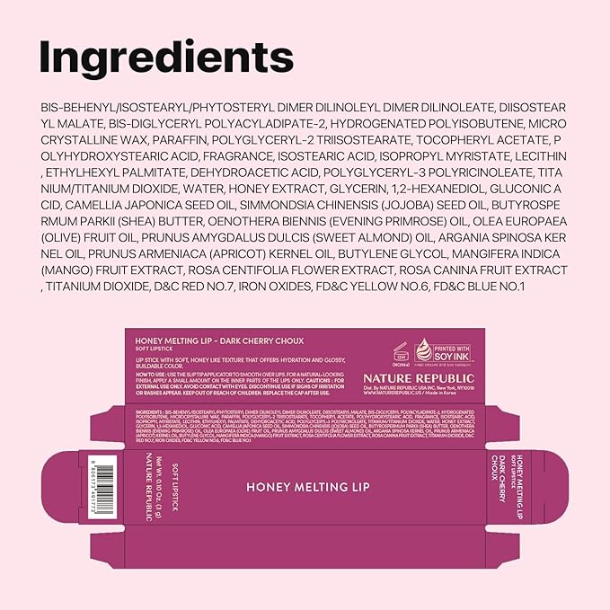 Nature Republic HONEY MELTING LIP 6-10 (08 BLACK CHERRY) K-BEAUTY, Lip Plumper, Tint, Balm, Korean, Lip GlossCute, Glow