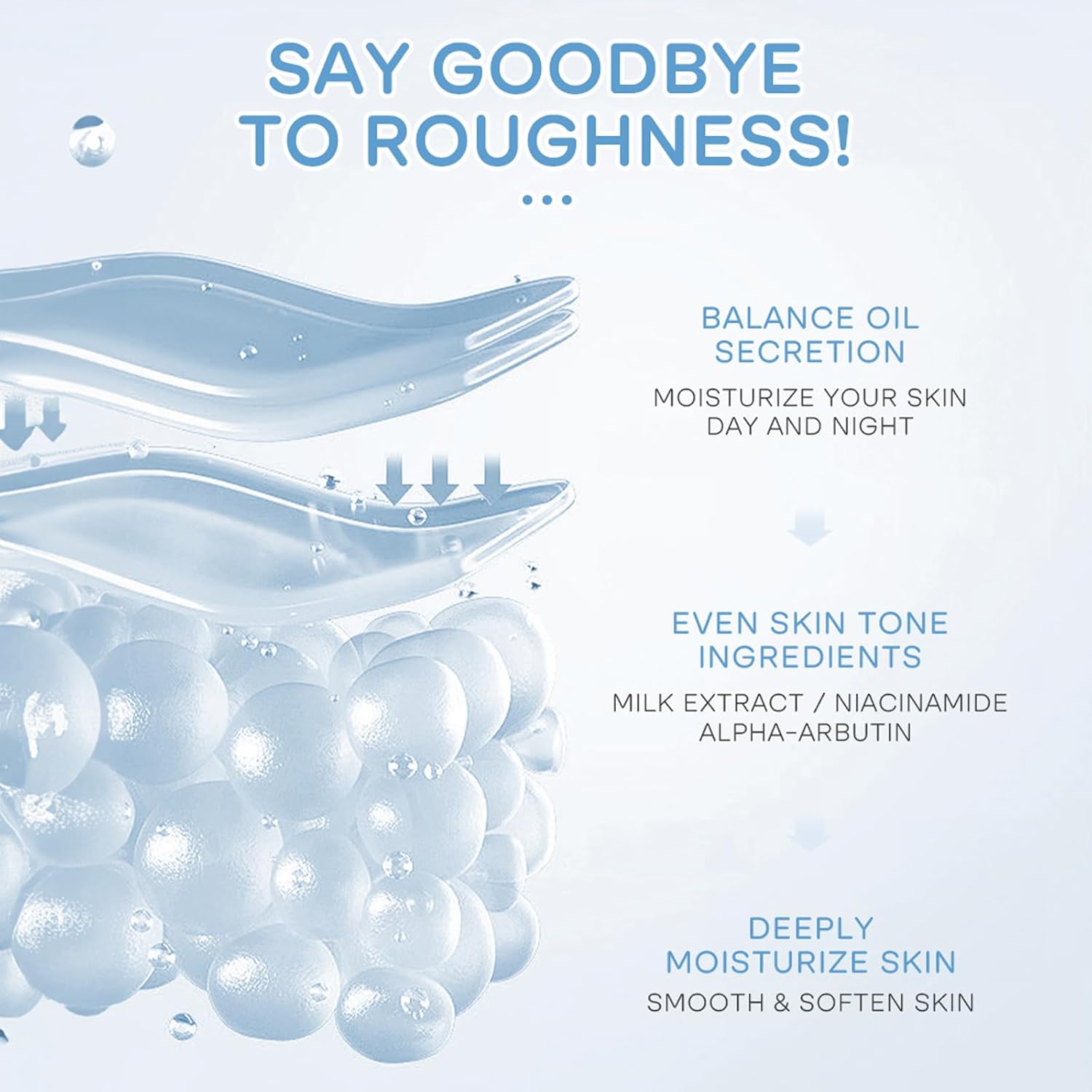 - [Hydrating Skincare Set]: Milk face moisturizer set forms a protective layer on the skin to prevent moisture loss, thereby keeping the skin moist, closing pores, soothing the skin, and gently exfoliating the skin for a smoother, more delicate look