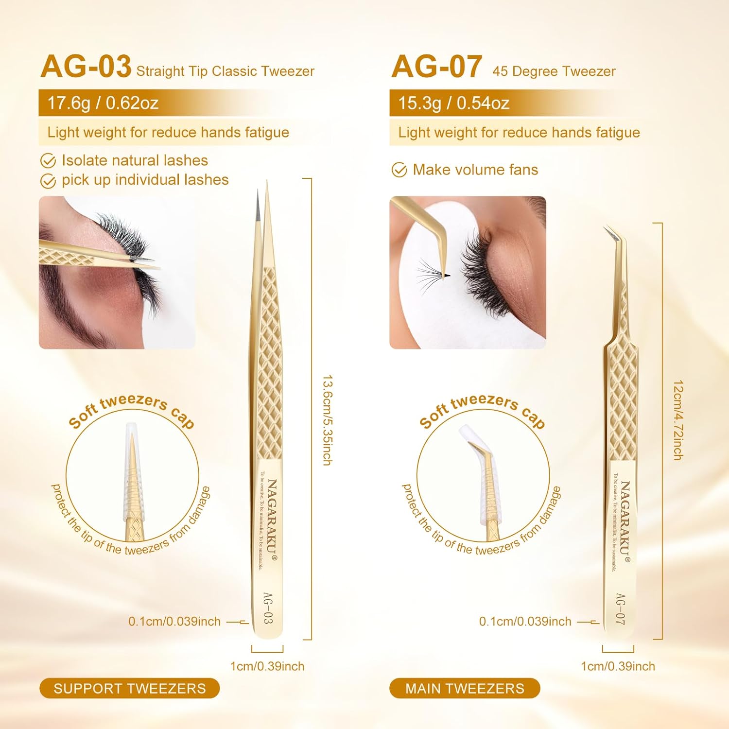 - 【AG-03+AG-07】Set of straight tweezers and curved tweezers. These handcrafted tweezers are made of high-strength stainless steel, which is resistant to most acids and other corrosive agents. We give each tweezer a box to protect the tweezers.