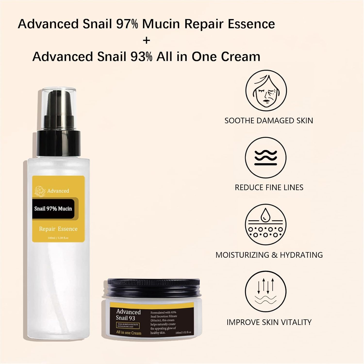 - 【Easy to Absorb】The snail essence set that absorbs quickly into the skin gives you a natural healthy glow. Provide long-lasting hydration without feeling heavy on the skin.