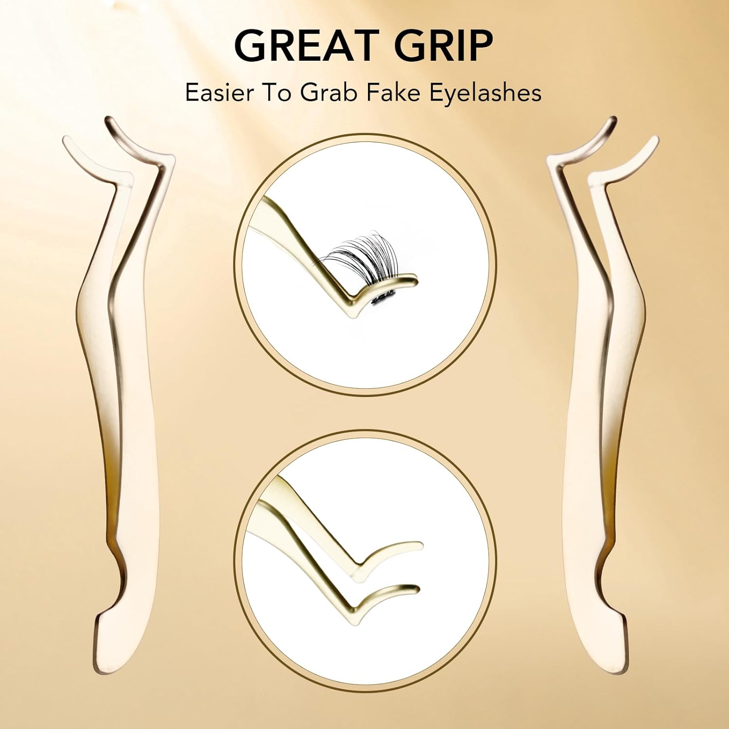 GOLLEE Eyelash Applicator Tool DIY Cluster Lash Tweezers Curved Eyelash Tweezers for Easy Lash Application and Removal, DIY Lash Applicator Tweezer For Strip Lashes Clusters Lash