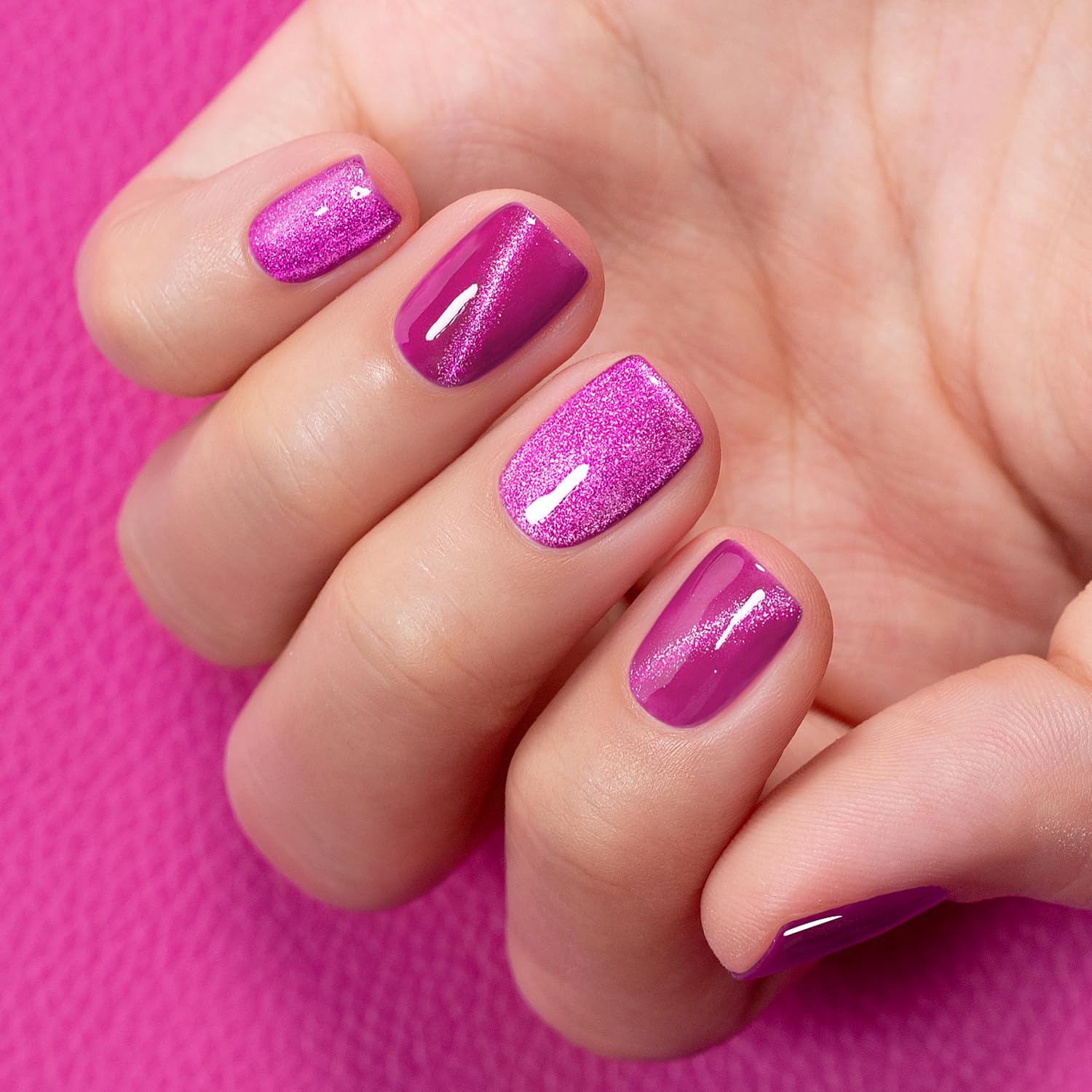 - EASY TO USE:This nude color cat eye gel polish is made with with natural resin ingredients,magnetic shimmers,translucent pigments and a non-toxic formula,so this gel polish set won't cause smudges cracks, or chips.It can last for 21+ days with perfect shine under proper application