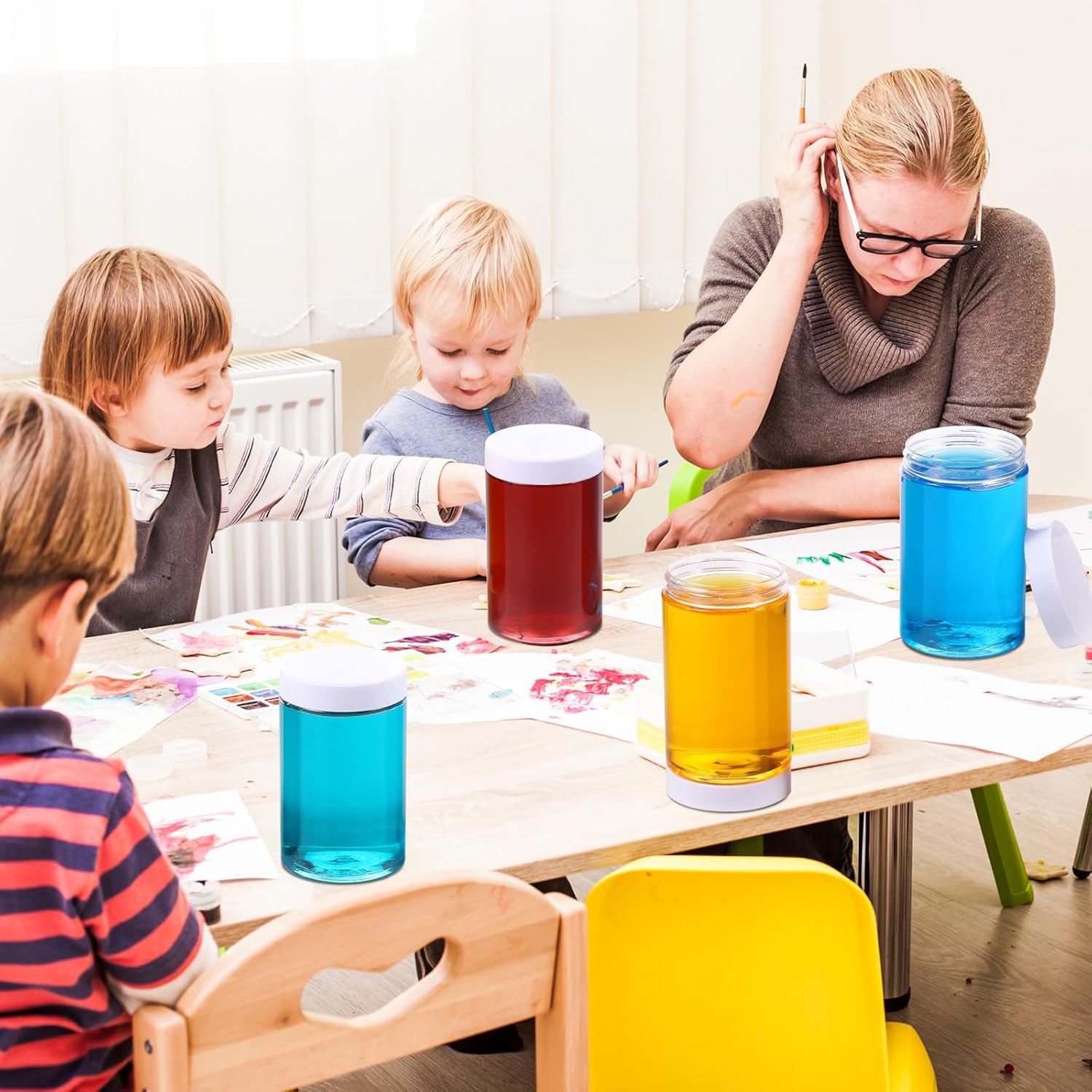- What you receive: there are 4 pieces plastic jars with white screw-on lids; They are reliable and refillable, measuring about 32 oz in capacity