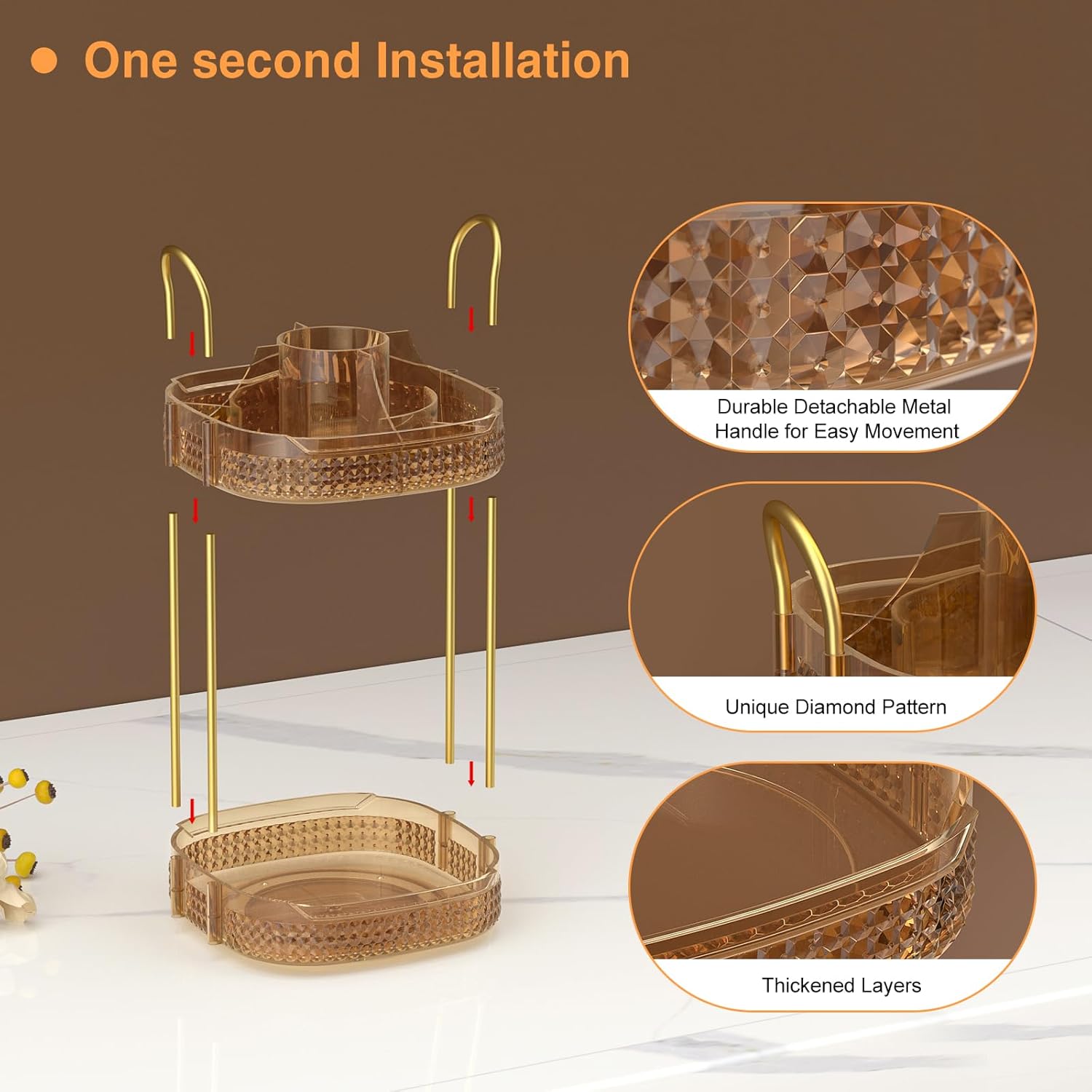 Awenia Rotating Makeup Organizer 360, Stackable Adjustable Large Capacity Cosmetic Storage Unit,Dresser Bathroom Kitchen Countertop Organizer with Metal Handle, Plus Size (Honorable Gold, 2 Tier)