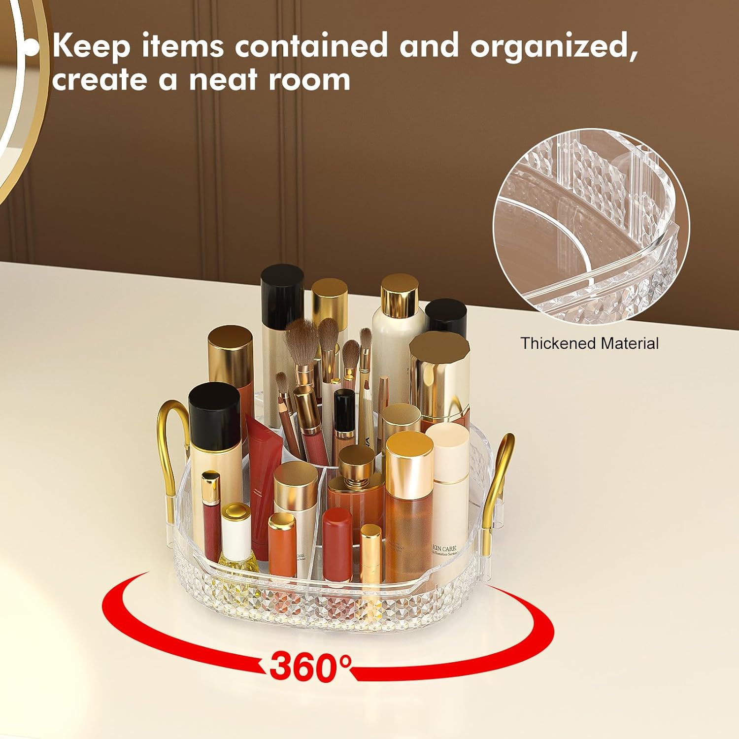 - 360 Degree Rotation& Easy to Install:➤Reinforced steady base rotates smoothly and silently, the rotating makeup organizer is easy access to all of your make-up in seconds.Less installation step are required other than inserting metal rack and handle,do not worry about repeated disassembly to shorten the lifetime of the makeup organizer.