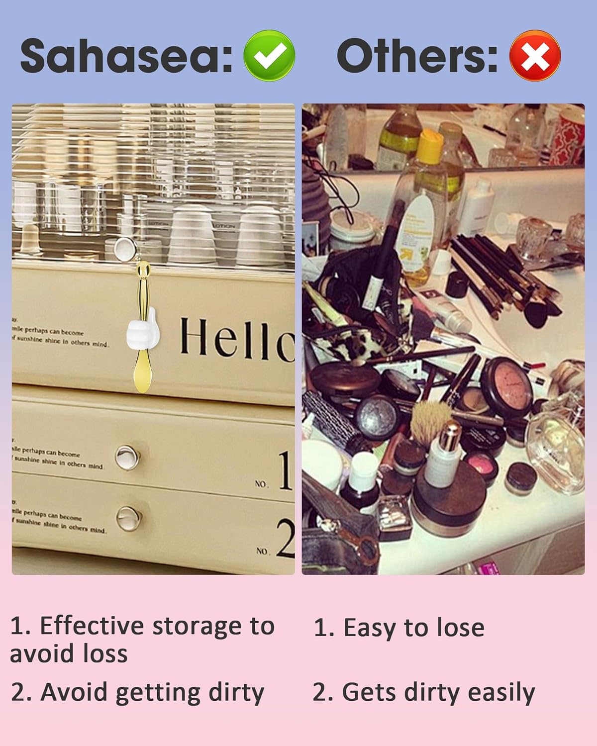 - Unique Design: The eye roller is made of stainless steel, the eye roller is easy to clean. The stickable thumb holder allows for convenient placement on surfaces like makeup organizers, desks, walls, and more. (Please wipe it clean before attaching.)