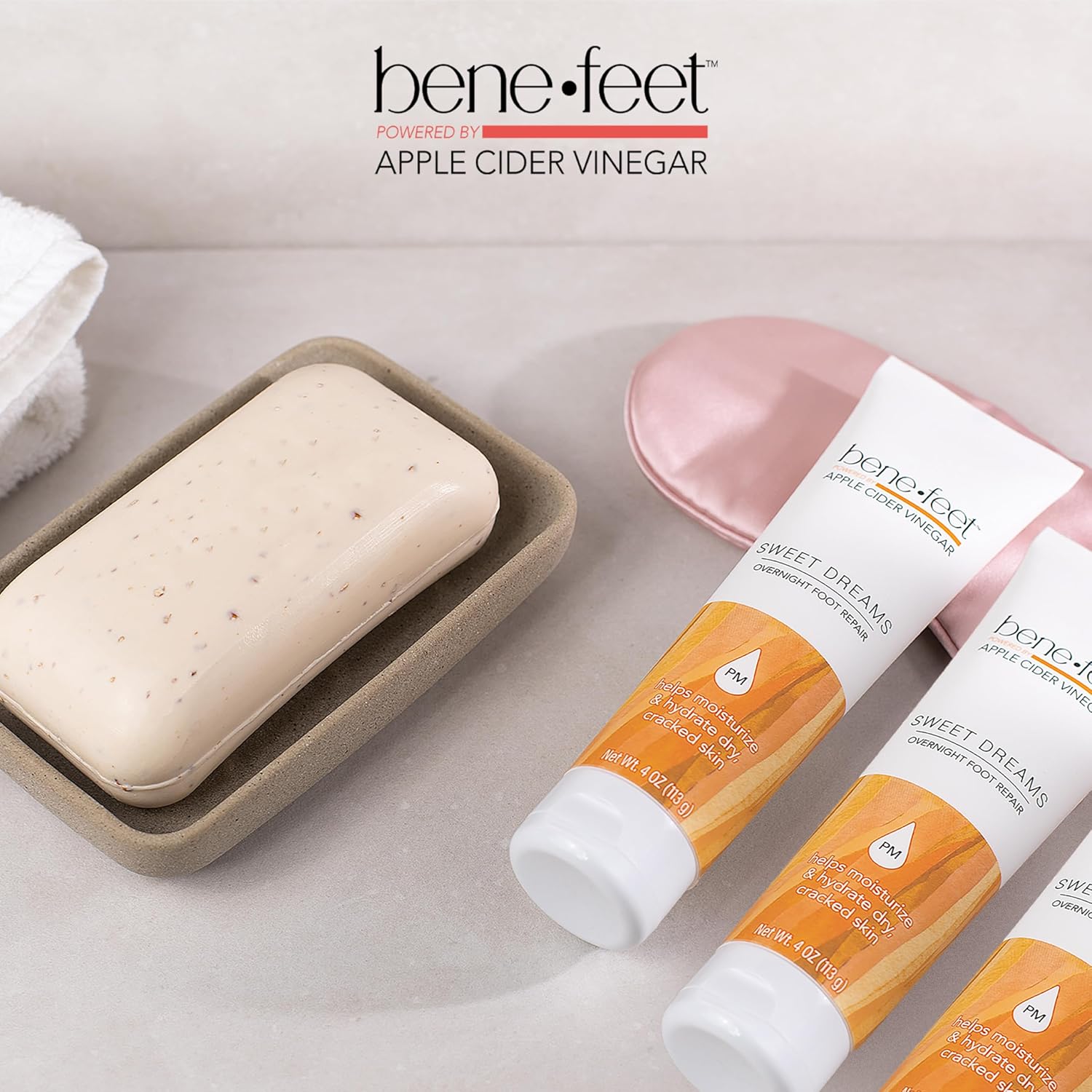Benefeet Sweet Dreams Overnight Foot Repair - Night Cream for Detox, Moisturize & Soften Dry Cracked Skin, With Apple Cider Vinegar, Turmeric & Borage Oil, 4oz (3 Pack)