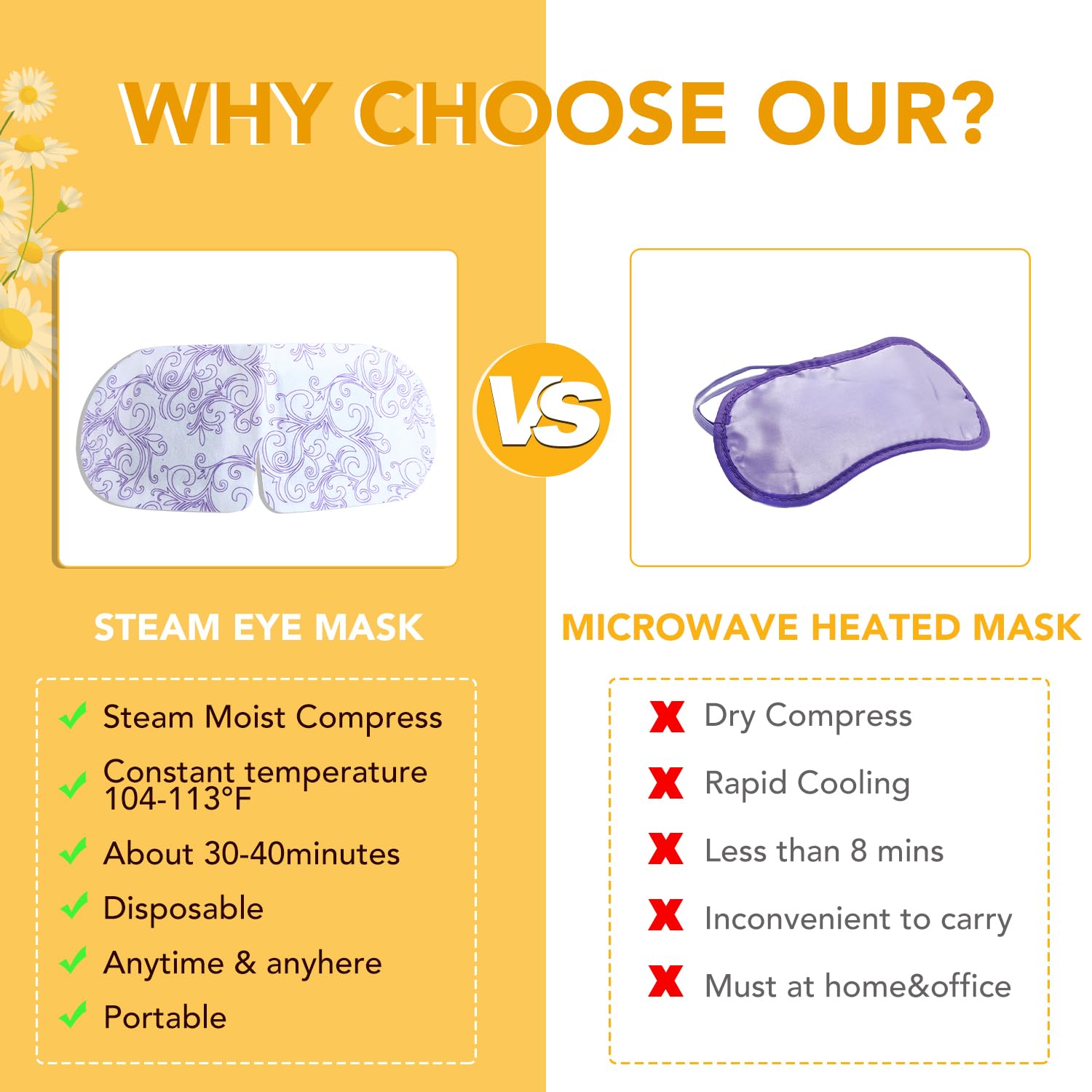 - 【Enjoy anytime, anywhere】The Disposable Self Heating Moist Heat Eye Masks adopts a disposable design and independent packaging, making it clean and convenient to use. Suitable for office workers, students, businessmen, etc. You can take eye spas at any time: sleep time, leisure time, lunch break time, flight or train travel time, office rest time.