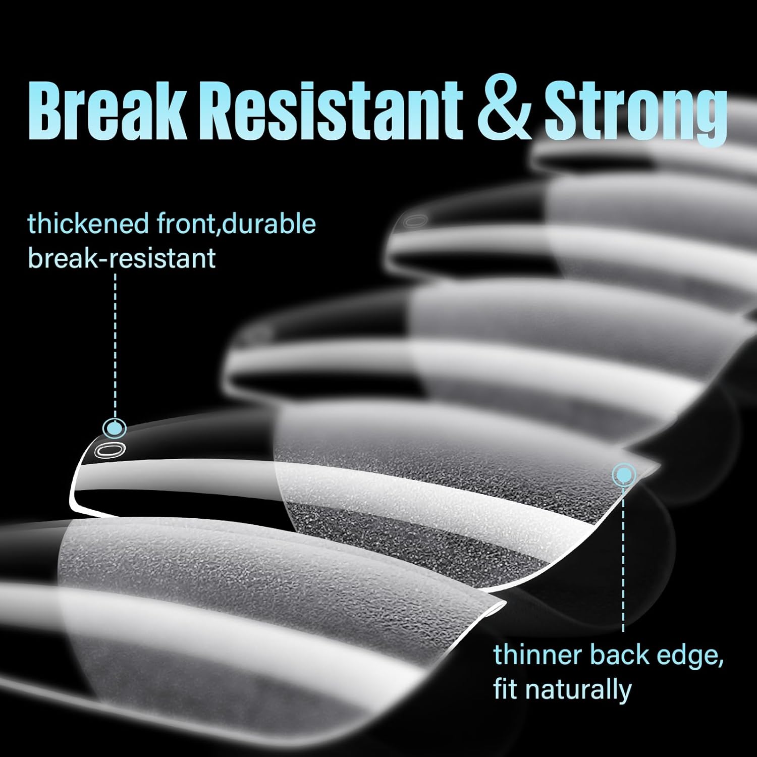 - 【Soft Acrylic Nail Tips】TOMICCA gel nail tips are made of Soft Acrylic material, which has strong toughness and ductility and are not easy to break, The non marking design also makes the nail color more symmetrical, which can DIY your ideal nail effect.