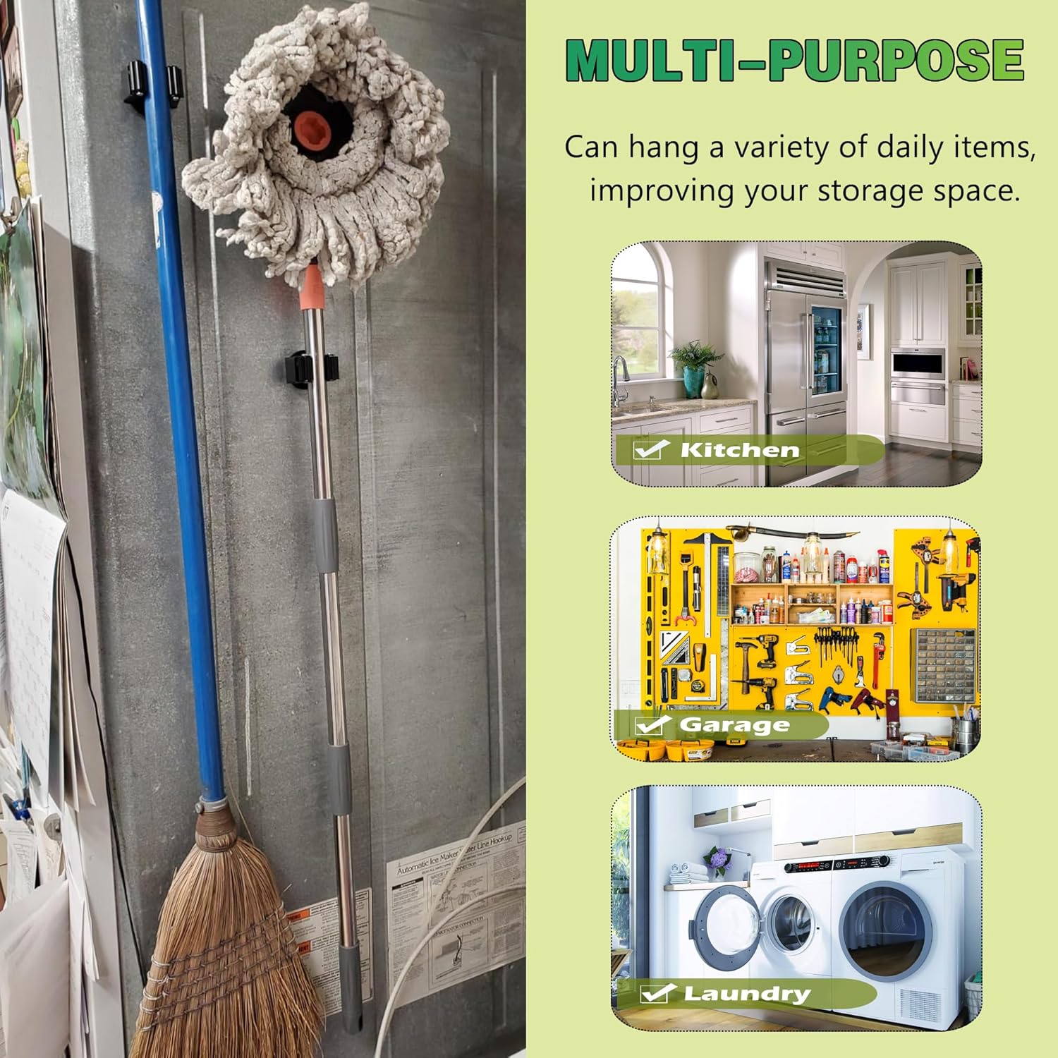 - [Pakage List]: 8 pcs Magnetic Mop Broom Holder. This hook is the perfect solution to reduce clutter, increase space, keep items in order, and quickly find what you need