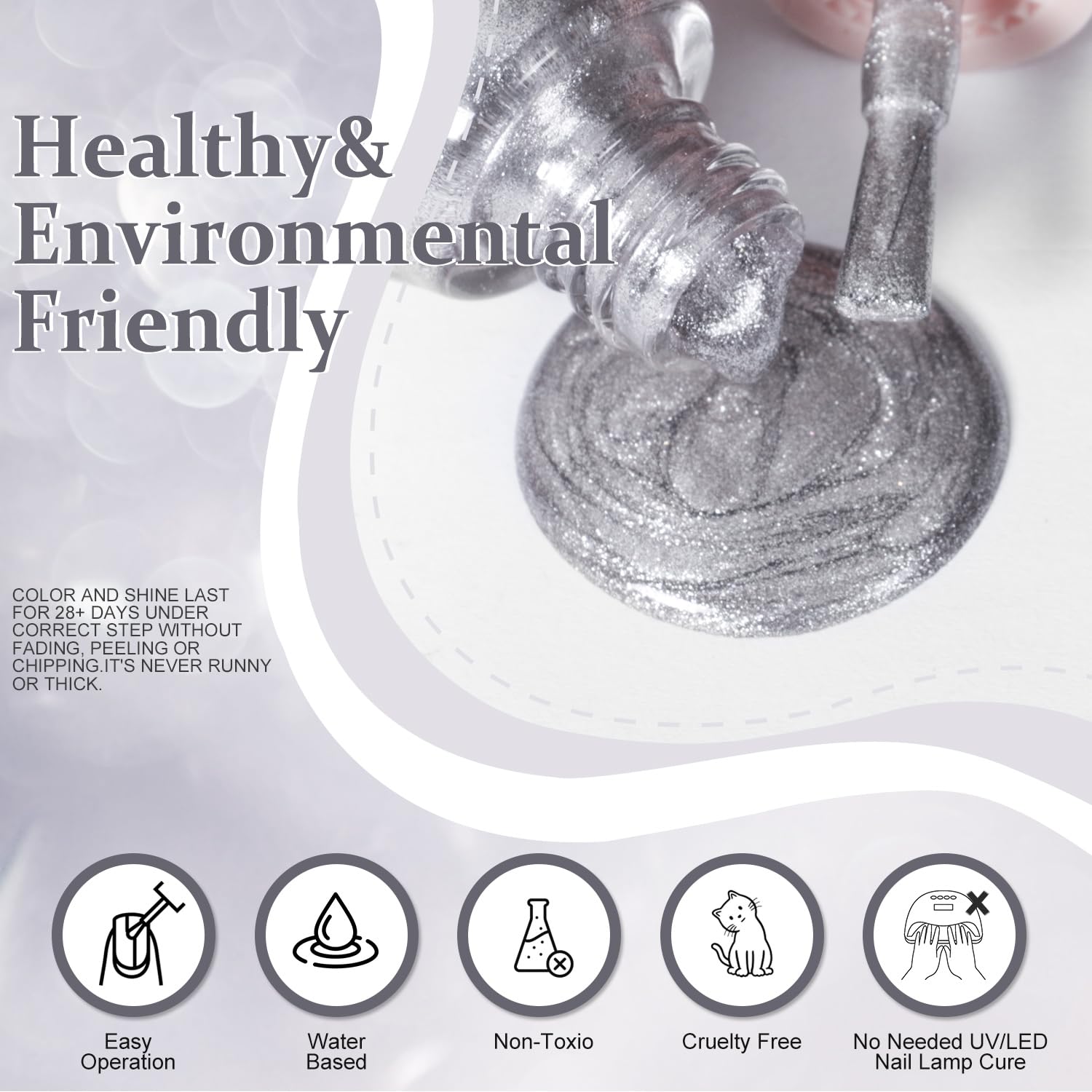 - Non-Toxic and Vegan: Our unique formula is free from harmful chemicals and phthalates, making it a safe and healthy choice for your nails. It helps maintain your nails' moisture, providing a glossy surface with instant and amazing results.