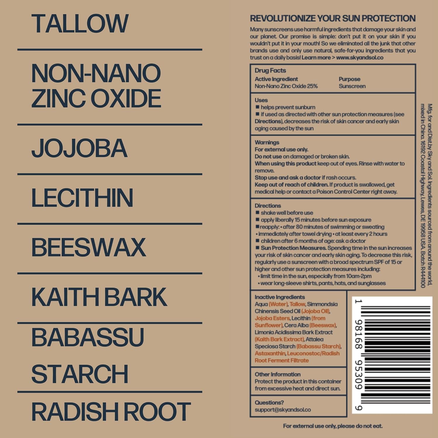 - Nourishing Animal-Based Skincare with Beef Tallow: Embrace the healing power of beef tallow, which nourishes and protects your skin. Sky and Sol offers effective sun protection while promoting skin health and vitality, making it the perfect everything cream for your skin.