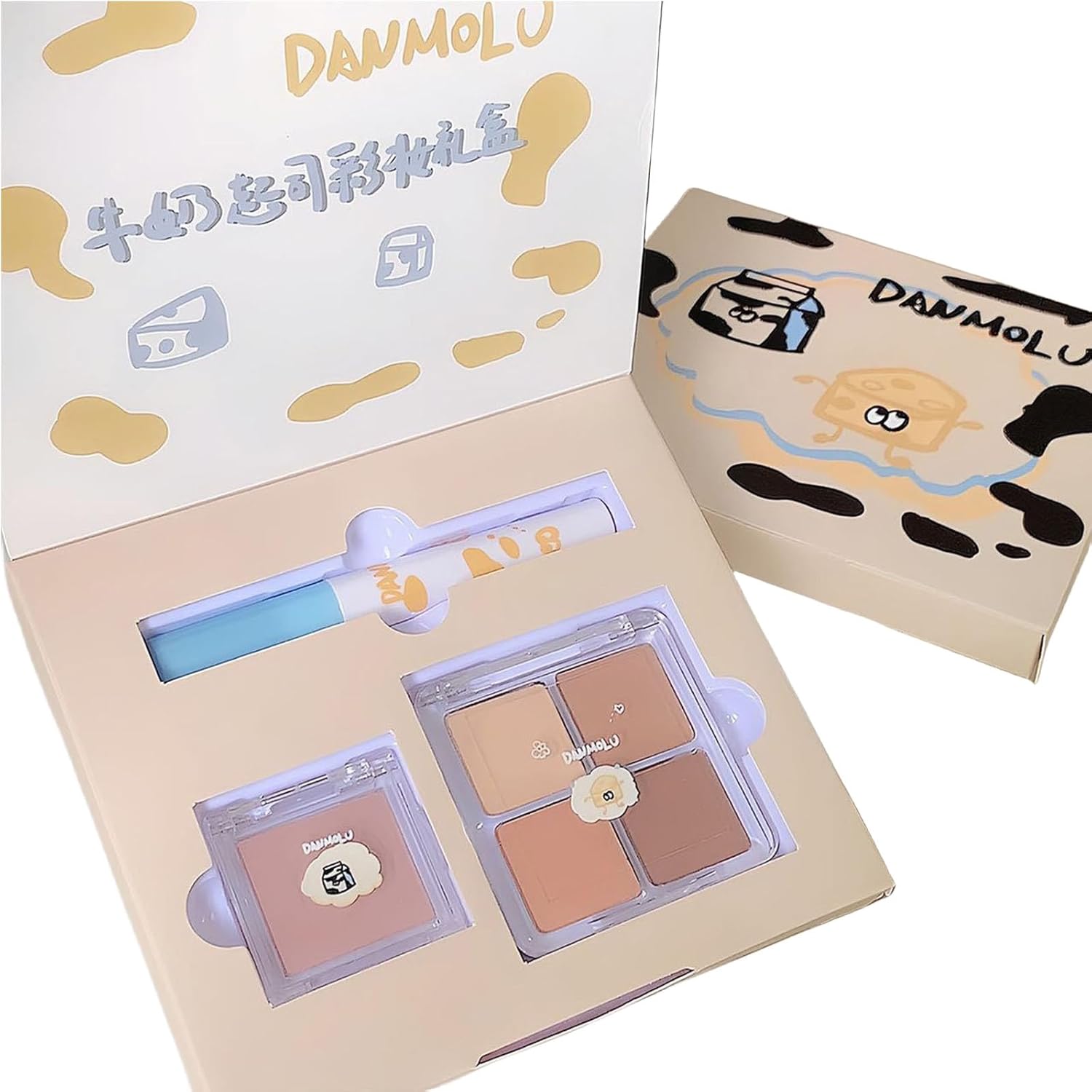 Neutral Eyeshadow Palette Velvet Lip Gloss Natural Glossy Blush Suitable for Beginners and Professionals 3-in-1 Multi-Purpose Makeup Set (1 Box)