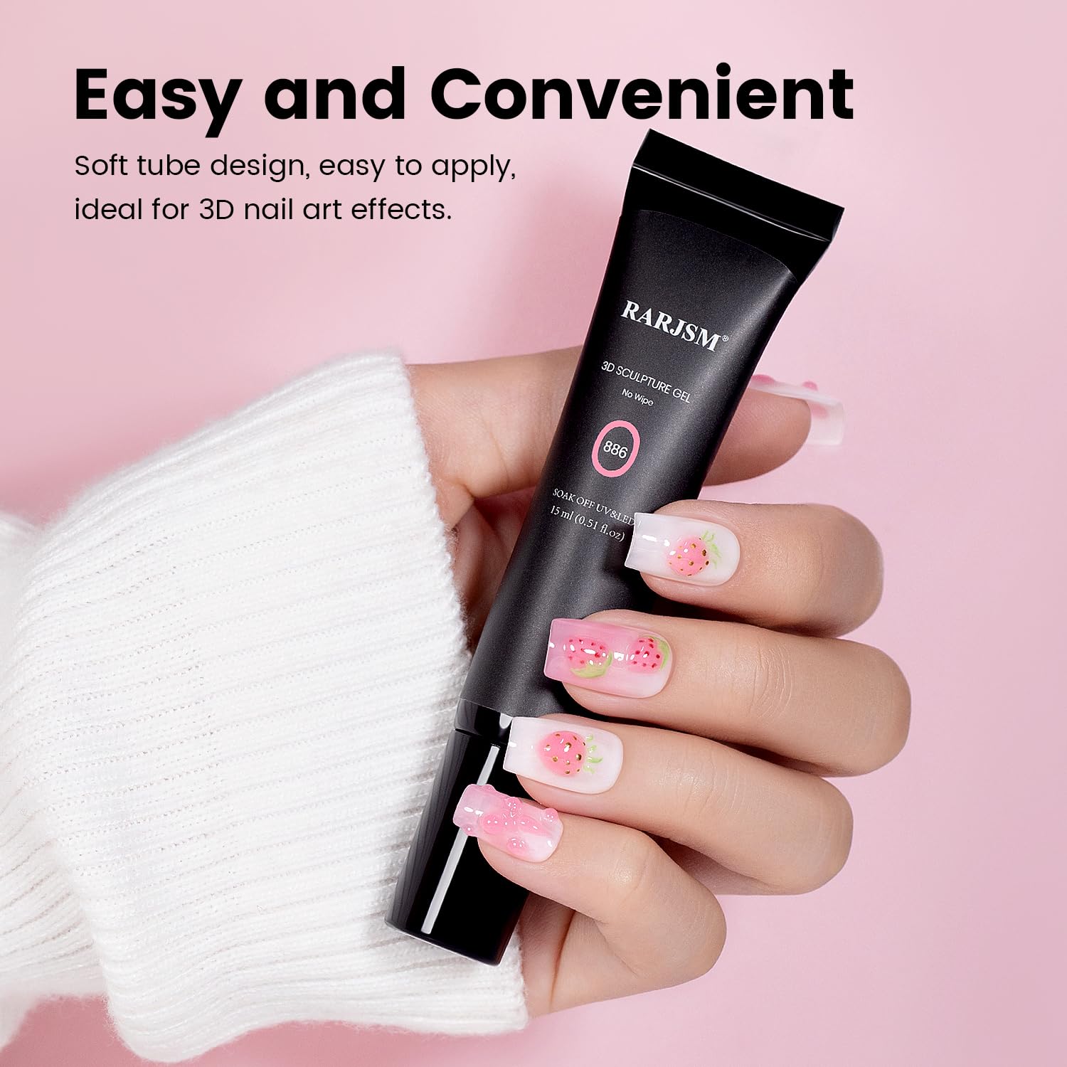 RARJSM 3D Nail Art Sculpture Gel - Nude, Pink, Rhinestone Glue, DIY Drawing, Hard Nail Craving, Sculpting Gel, UV LED Curing