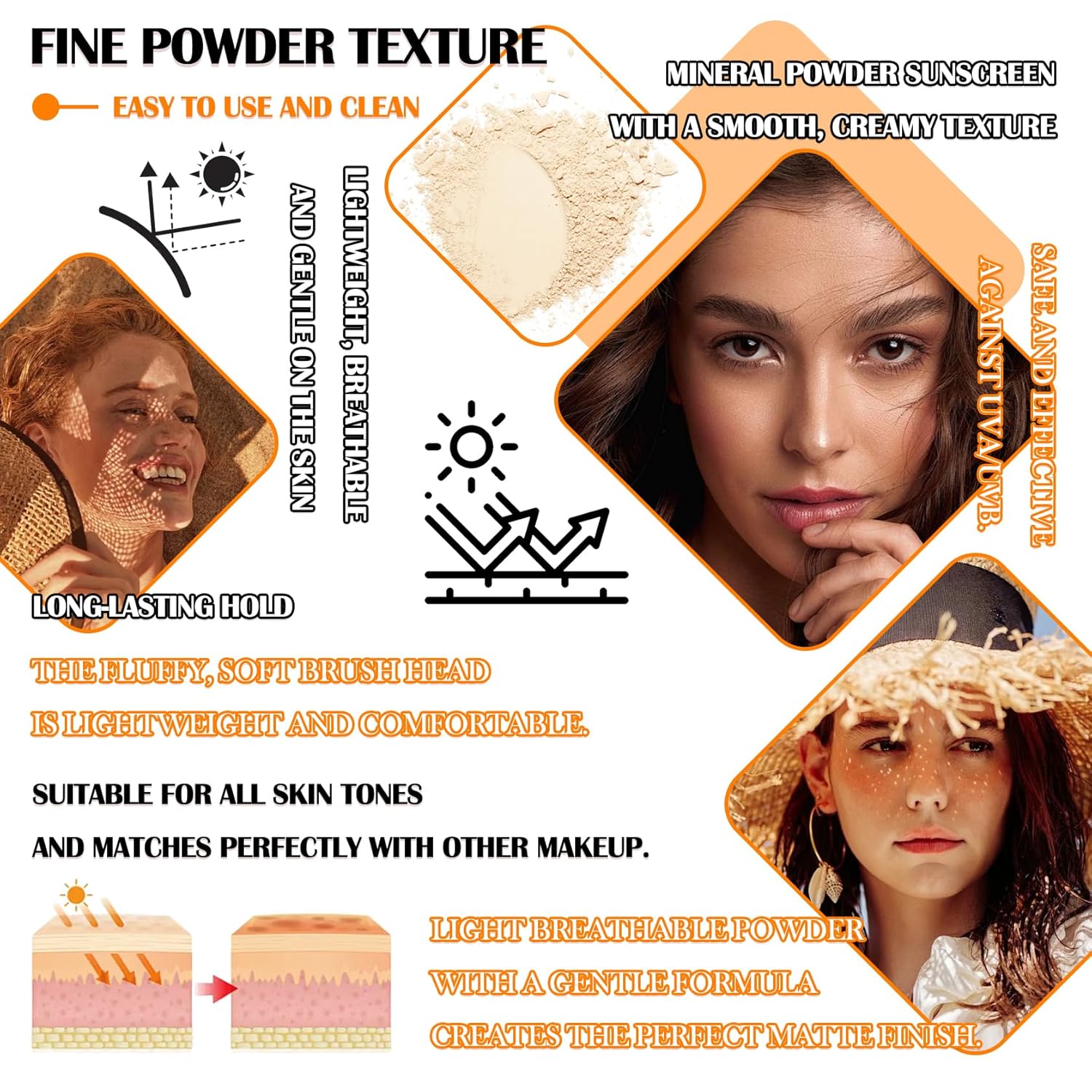 - 💠【Long-lasting Waterproof】Mineral sunscreen powder, excellent waterproof performance, even if you participate in outdoor activities or high-intensity sports, you can maintain a clear and matte makeup all day long.