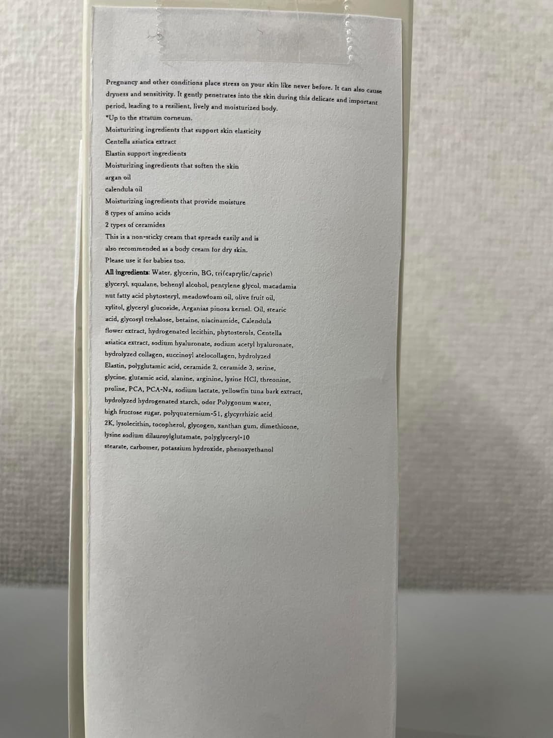 - 【Moisturizing for Dry Skin】 A body cream born from the collaboration of midwives and experienced moms. It's a fragrance-free, color-free, and gentle formula, perfect for Japanese expectant mothers. Its ease of use without the need for massage is one of its appealing features. With its high moisturizing power, it's also great as a body cream for combating dryness.