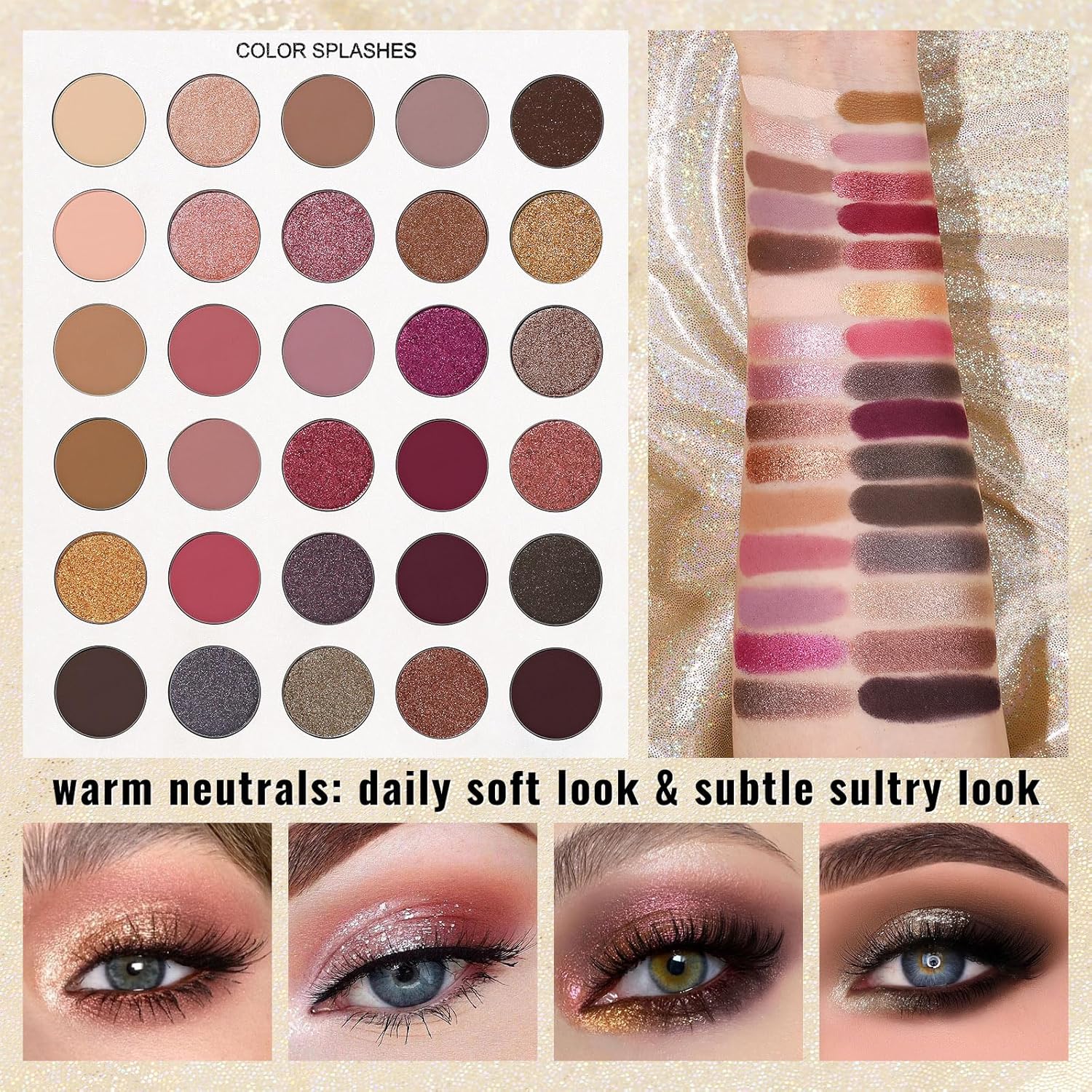 - 【❤Book-Shaped Design, Serves Versatile Functions】Advanced artistry eyeshadow pallet housed inside a folded golden illusory-iridescent packaging, portable to take outside and travel with. Complete large palette contains arrays of carefully-chosen colors that can be used to shade, shape, highlight and define eyes, brows, and contour face to create endless amounts of creative makeup looks for all skin tones and eye colors. Complement your look with proper lip shades and you’re good to go!