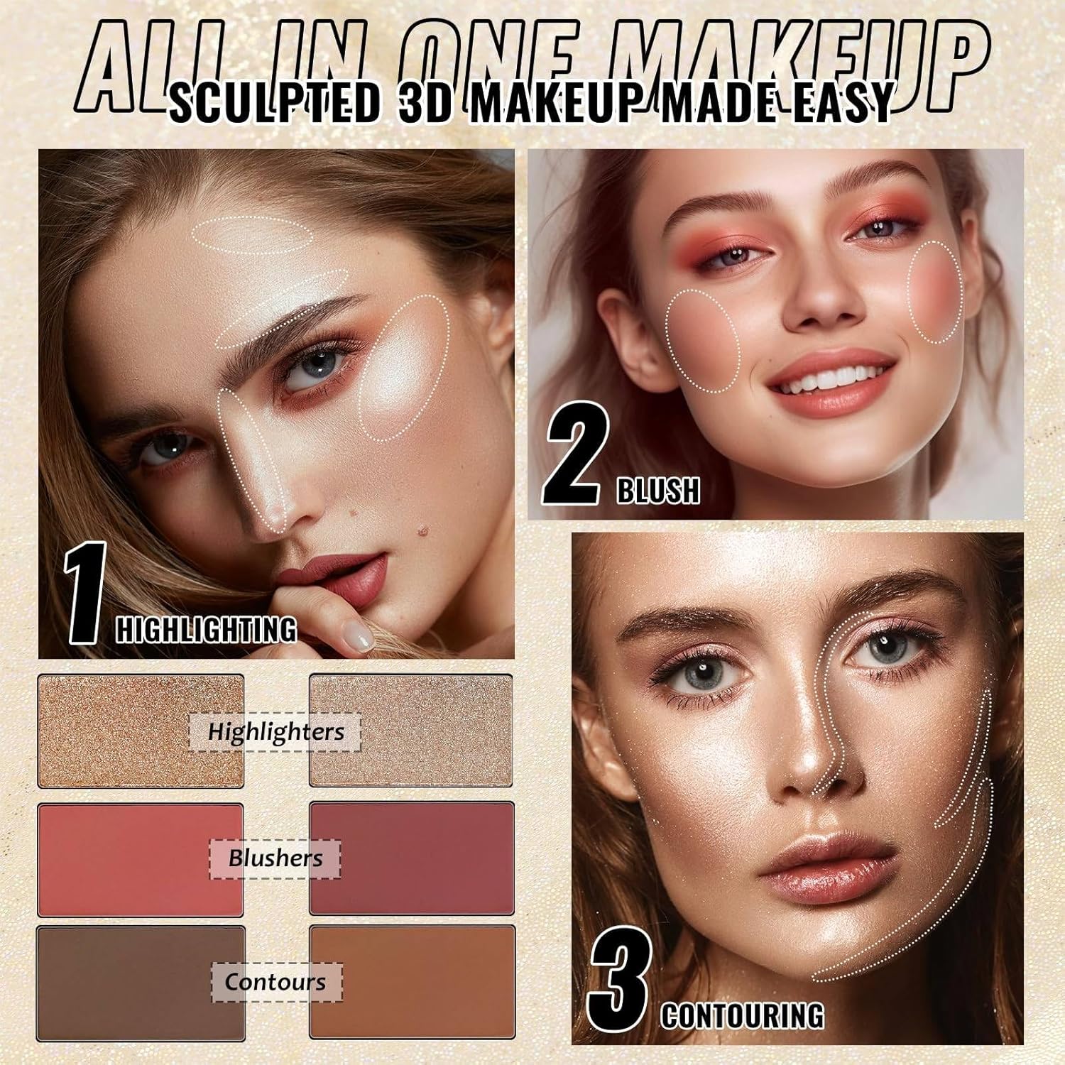 - 【❤Cool & Warm Tone Palette, Customize Your Looks】Combining vibrant blush, shading contouring powder, eyeshadow and illuminating highlight together, suitable for makeup beginners and makeup artists in different skin types. Neutral naked nude shadows for everyday makeup. Bright rainbow eye shadows for bold stunning makeup. Deep dark shades for creating goth smokey eye makeup looks. Shimmer and glitter shadows to add shining topcoats.