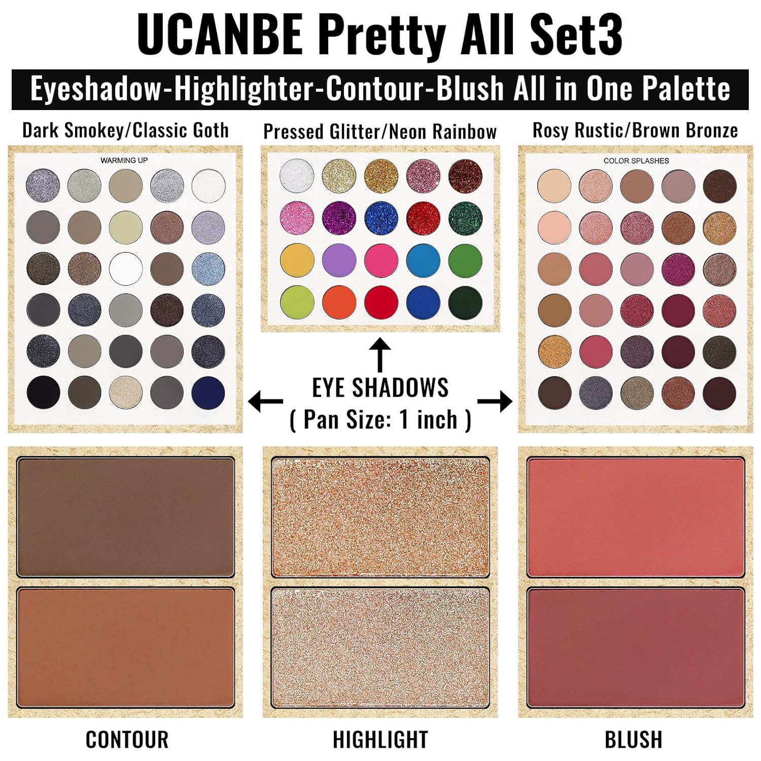 UCANBE Eyeshadow Palette with 15 Brushes Makeup Sets, Pigmented Eye Makeup Pallet Holiday Gift Set, Matte Smokey Rosy Neutral Glitter Eye Shadow Powder & Contour Highlight Blush All-in-One Make Up Kit