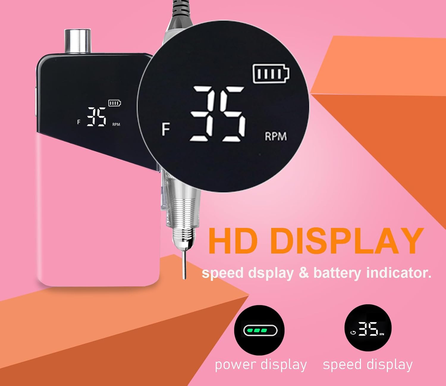 - 🔸 Premium Cordless Design: Enjoy 8-10 hours of uninterrupted use thanks to the 2000mAh rechargeable battery. Compact and lightweight, this portable nail drill machine is ideal for on-the-go beauty sessions.