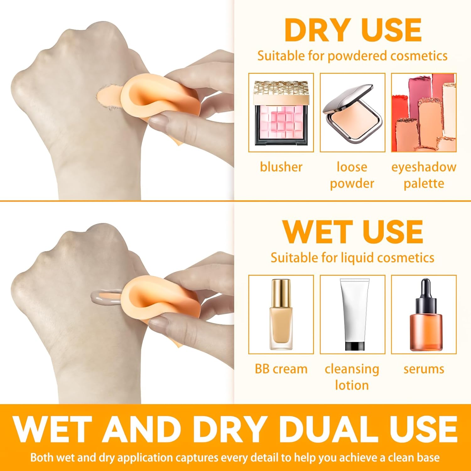 - Wet and Dry Dual Use: Both wet and dry application captures every detail to help you achieve a clean base. Suitable for powder, cream or foundation, can be used for all makeup types