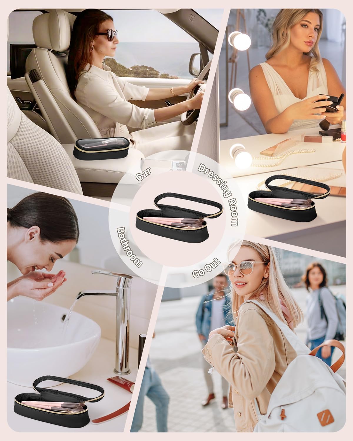 - Practical Metal Zipper Design: The chic metal zip not only enhances the overall aesthetic but also ensures a secure closure. Even if your makeup brush bag falls off, your makeup brushes won't fall out.