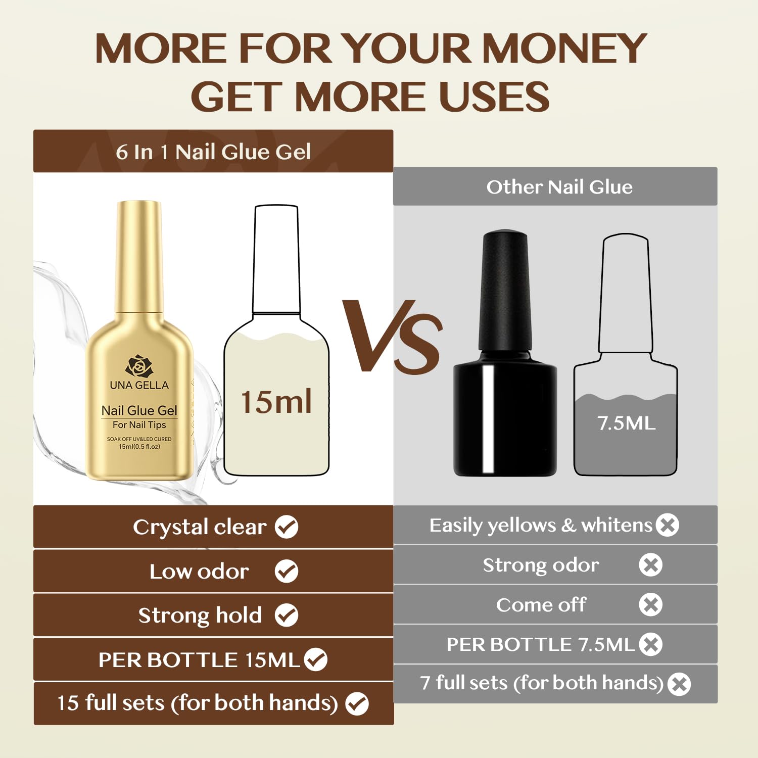 - ❤️【Suit All Kinds of Nail Tips】UNA GELLA Gel Nail Glue is suitable for clear nail tips, acrylic nails, and soft gel tips, offering ultra-strong adhesion.