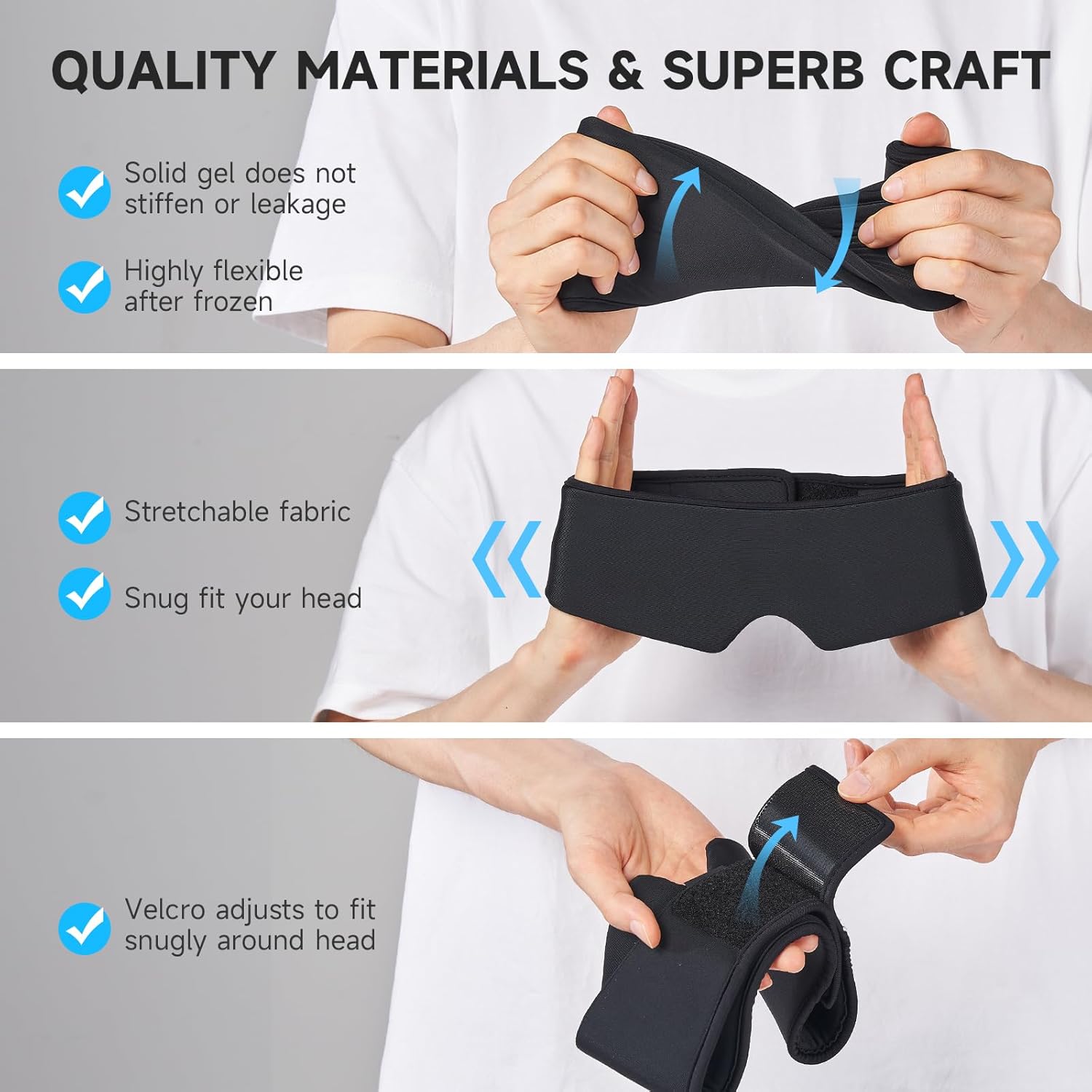 - Convenience, Reusability, & Unparalleled Comfort: Utilizing a reusable gel design, these masks are a breeze to use. Just pop them in the freezer bag provided and freeze for 2 hours before application. The gel ice pack is ideal for relieving headaches and soothing puffiness around the eyes. Moreover, it can double up as cold compresses for other areas of the body