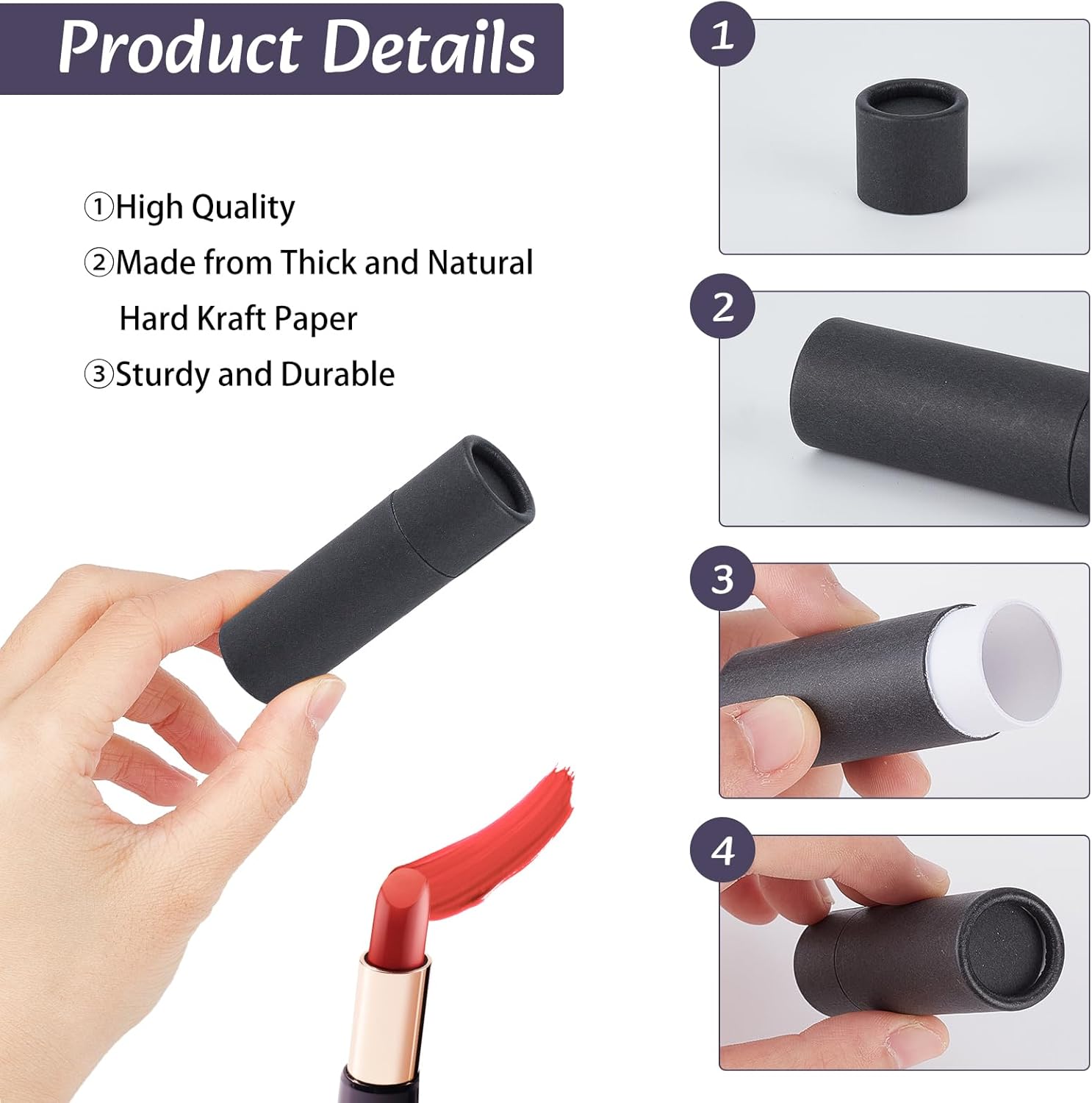 - HIGH QUALITY: Crafted from thick, natural hard kraft paper, our lipstick tubes are sturdy, durable, and eco-friendly. The interior is lined with plant-based wax paper, ensuring no leakage and maintaining the integrity of your lip balm formula.