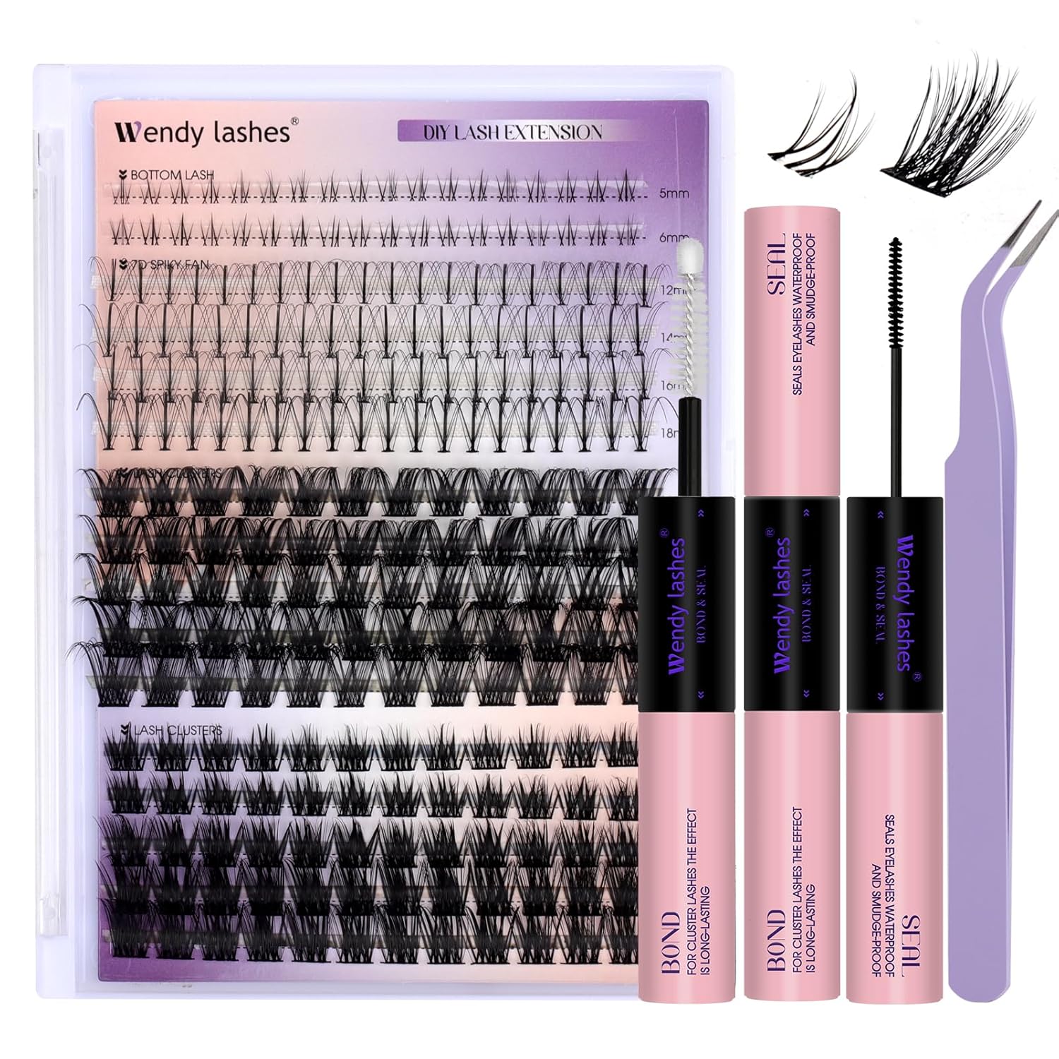 - NEWLY UPGRADED LASH EXTENSION KIT: you'll get a combination tray of upper and lower lashes (including 2 rows of bottom lashes, 4 rows of spike lashes, 4 rows of lash clusters, and 4 rows of another style of lash clusters), lash bond and seal, a lash tweezers with a great grip!