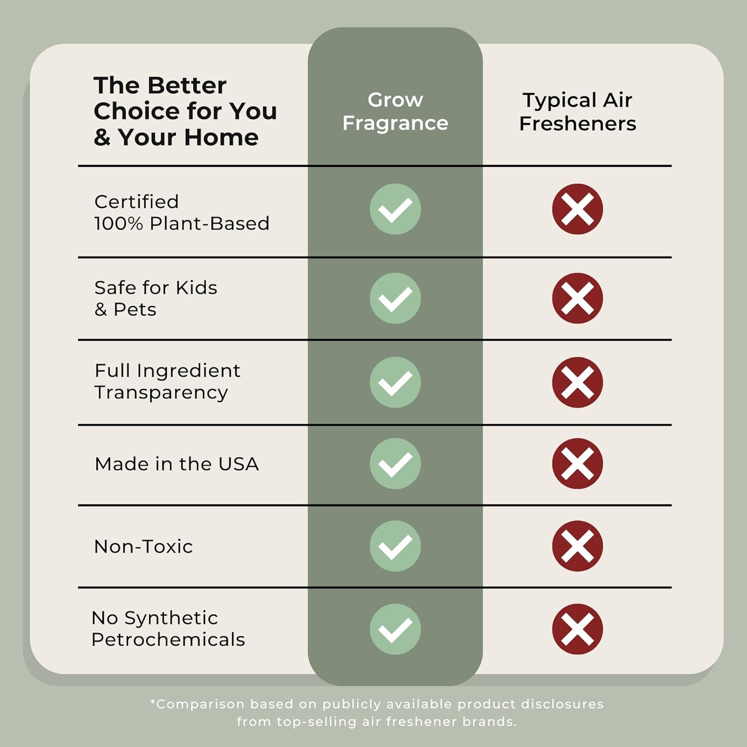 - Crafted With Care: At Grow Fragrance, we're dedicated to creating premium, plant-based air fresheners that enhance well-being. Our sprays are meticulously crafted in small batches by master perfumers, ensuring superior quality and consistency in every bottle. Experience the luxury of nature-derived scents with Grow Fragrance.