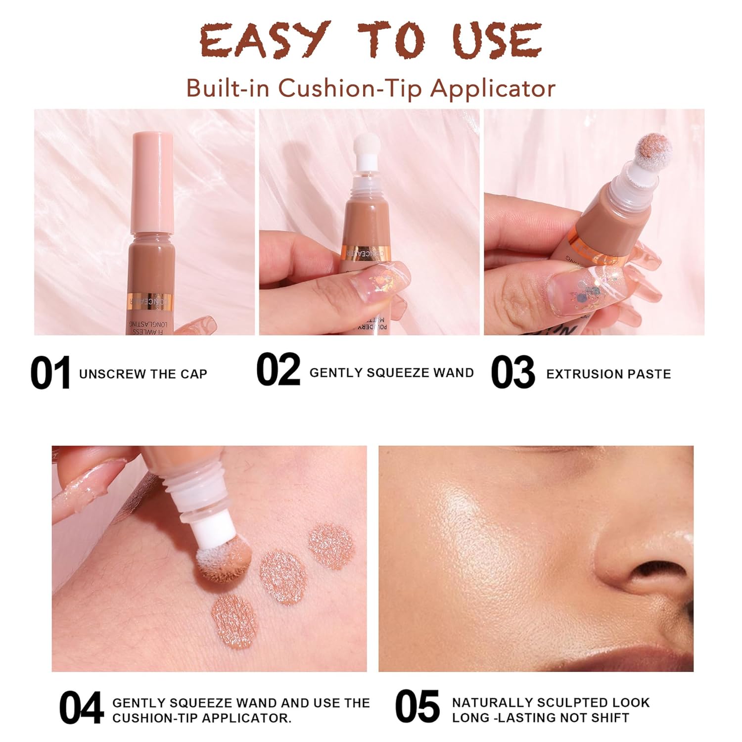 Sunnyvale Contour Stick With Cushion Applicator, Liquid Contour Wand, Cream Bronzer Concealer Stick Lightweight For A Naturally Sculpted Look, Buildable Formula, Vegan & Cruelty-free