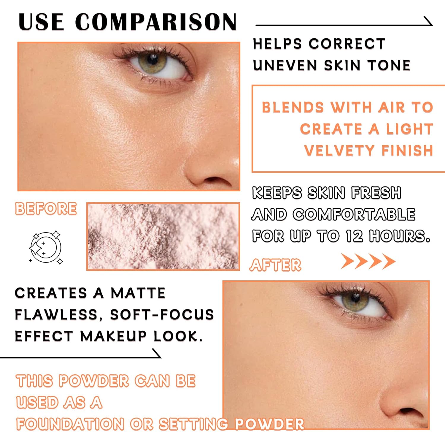 - 💖【Fine Powder】Loose face powder is fine and easy to apply, no caking or creasing, lightweight and non-greasy, very flattering to the skin.