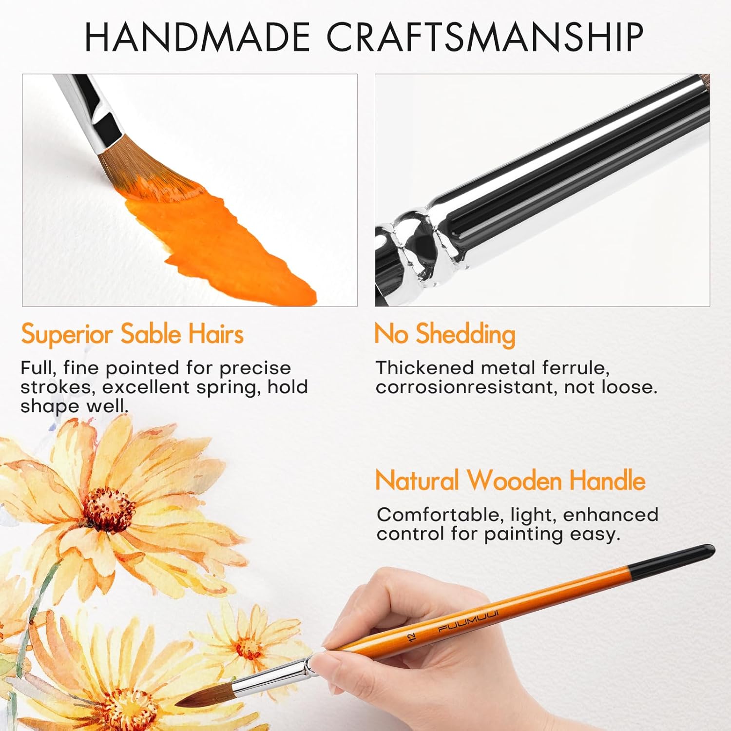 - Wide Application - This set sable paint brushes are excellent for watercolor, acrylics, inks, gouache, illustration, animation and rendering. For anyone who loves painting; Paintbrush set for professionals, hobby artists, beginners, adults, kids; Elegant design, excellent quality.