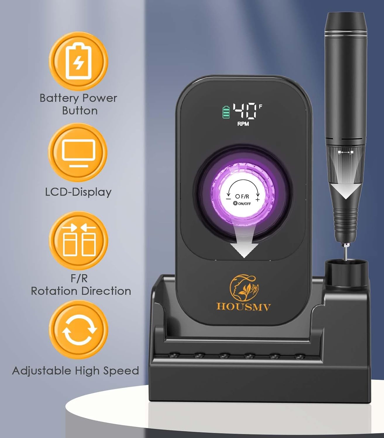 - 𝐇𝐢𝐠𝐡 𝐒𝐩𝐞𝐞𝐝 & 𝐄𝐟𝐟𝐢𝐜𝐢𝐞𝐧𝐭 𝐇𝐞𝐚𝐭 𝐃𝐢𝐬𝐬𝐢𝐩𝐚𝐭𝐢𝐨𝐧: Our advanced nail drill is equipped with a powerful upgraded aluminum alloy motor and a unique ventilation system motor bearing, ensuring smooth operation even at high speeds (up to 40,000 RPM), low heat, low noise and low vibration. It is a must-have for beginners, professional nail technicians, and nail enthusiasts.