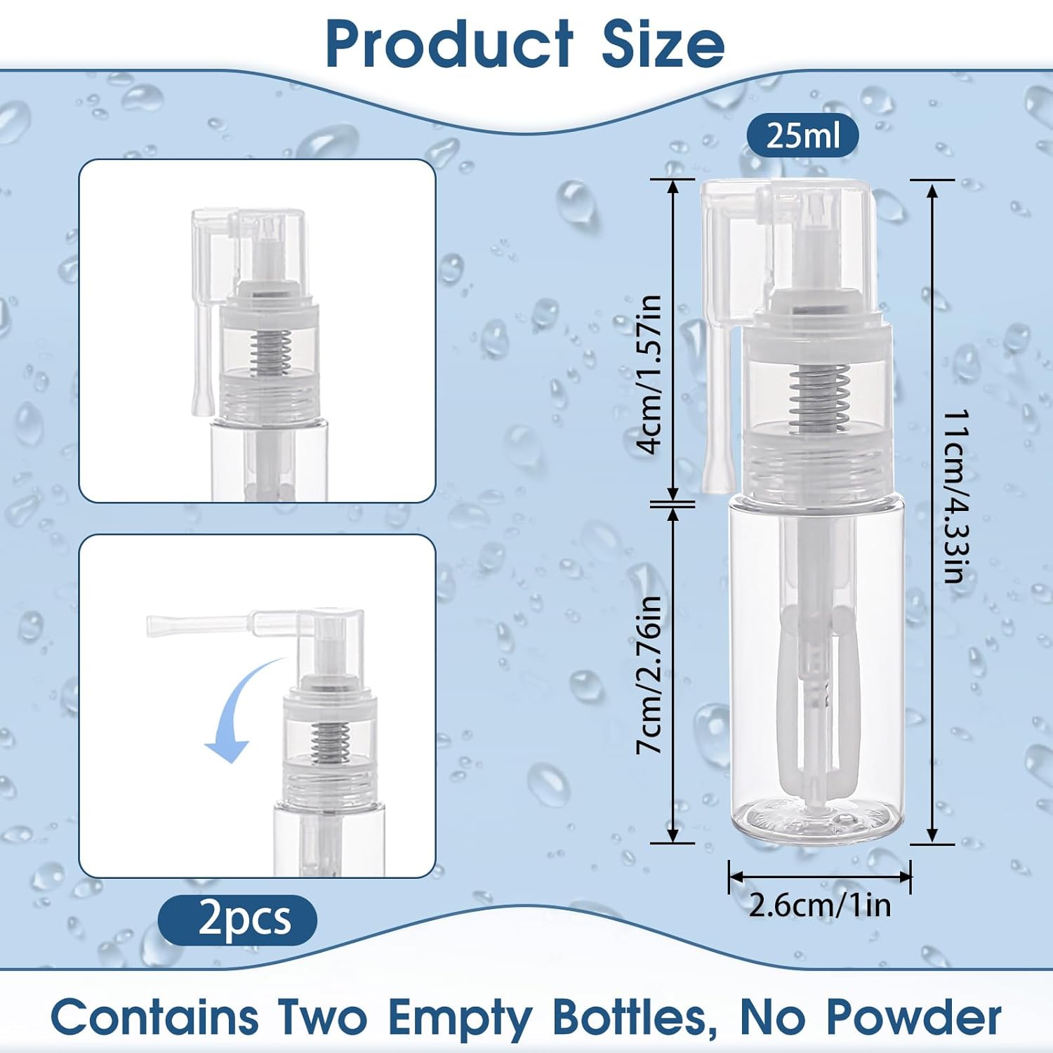 - 【Product Size】 The specific size of this 25ml spray bottle is 10.9 x 2.6 x 2.6cm. Please pay attention to whether the size meets your needs before purchasing.