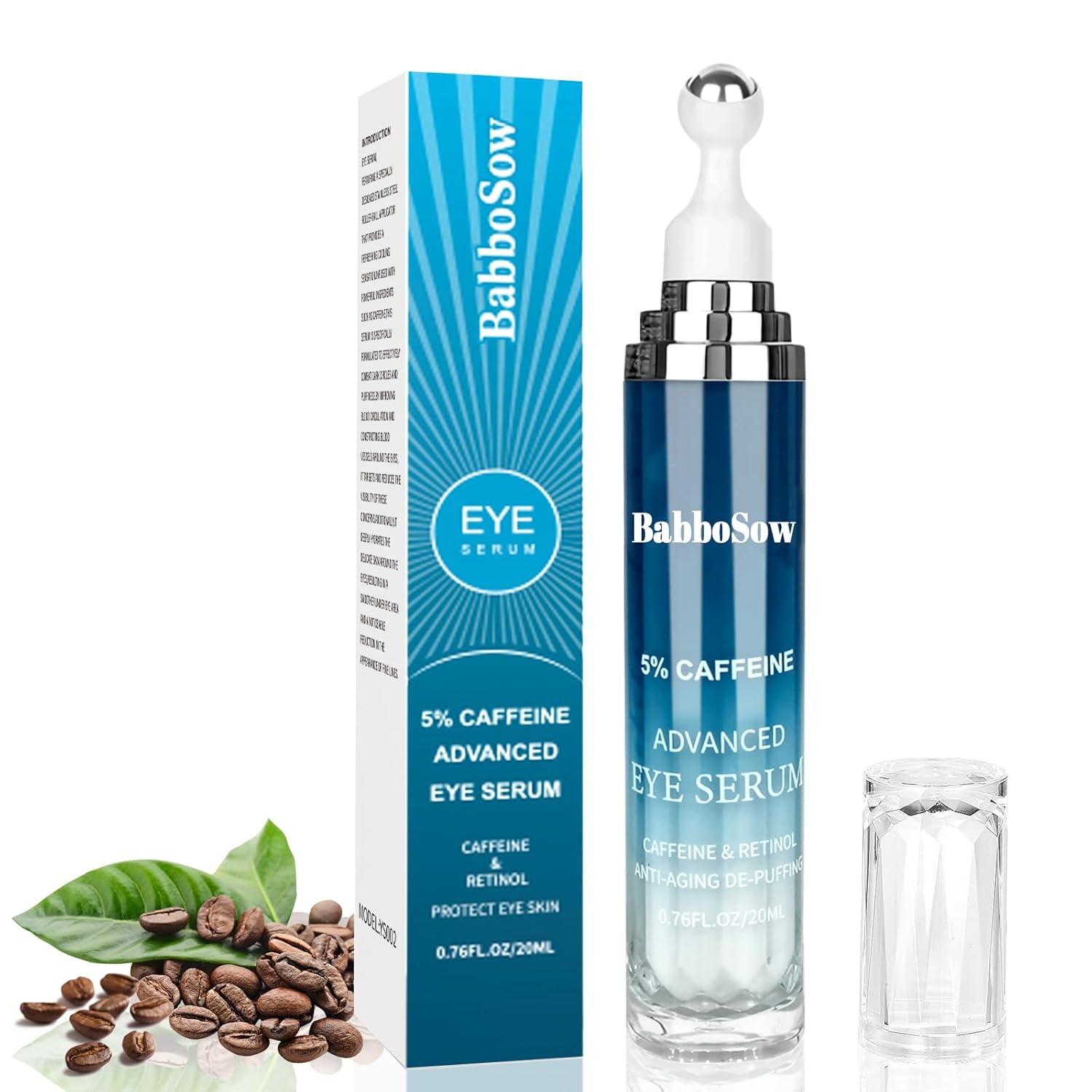 Caffeine Eye Cream and 24K Gold Eye Mask (20 pcs): Under Eye Serum for Dark Circles and Puffiness Eye Care Eye Serum Anti Aging with 360° Massage Ball Reduce Eye Bags, Wrinkles and Fine Lines