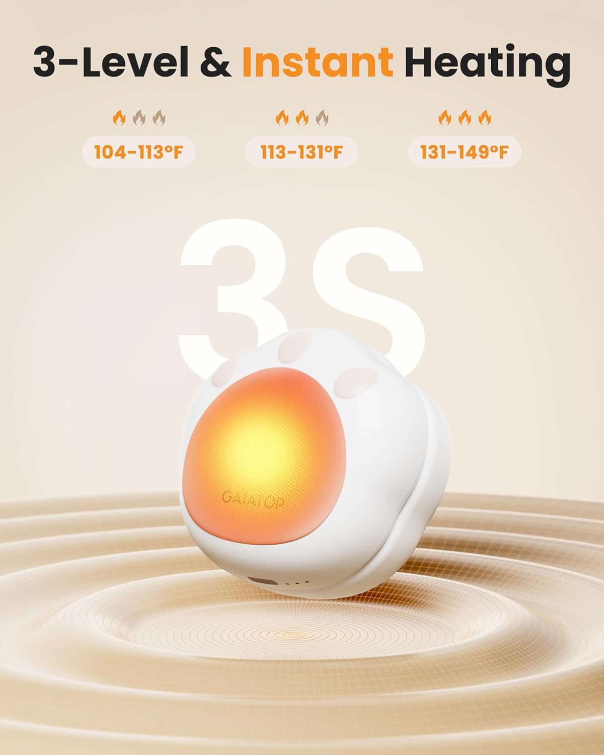 - Fast Heating and 3 Heat Settings: The hand warmers generate a large amount of heat and hot hands in seconds; Each with 3 heat settings, adjust the temperature to your comfort level, the temperature range from 104 °F to 149 °F In 1st to 3rd level