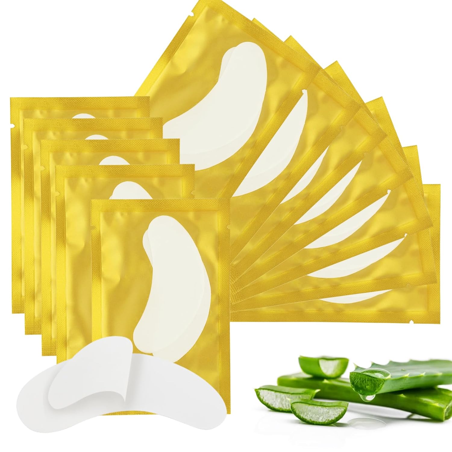 50Pair Eyelash Extension Gel Patches Kit Natural Hydrogel, Lash Gel Pads for Beauty Makeup Mask Kit Supplies Eye Mask Pads Beauty Tools (Gold)